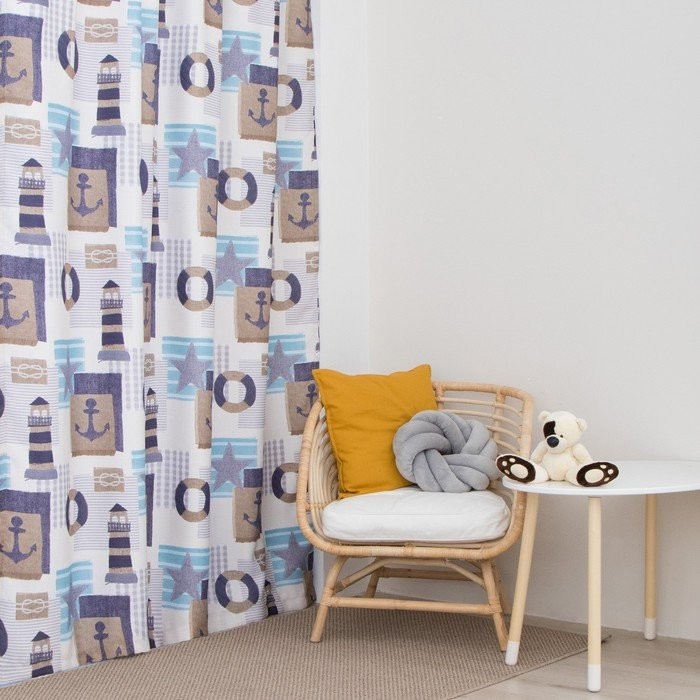 Портьера Этель «Морской стиль» без держателя, цвет синий, 110×260 см, блэкаут, 100% полиэстер