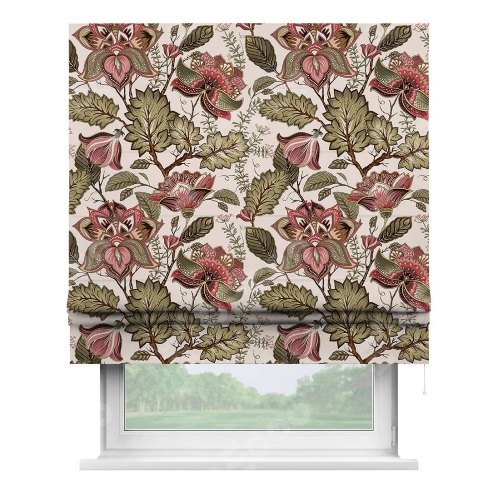 Римская штора производителя «Cortin», используется для проёма, пошита из ткани блэкаут с нанесением сублимационной печати «Старинные цветы». Имеет универсальный механизм и подходит для монтажа: на потолок, на стену и в нишу.