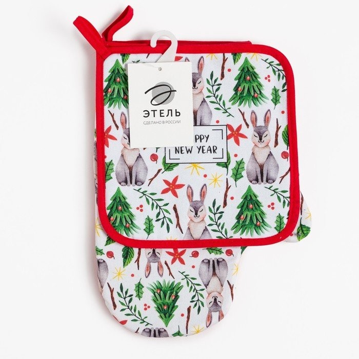Набор кух. «Happy New Year» варежка-прихватка 20×28 см, прихватка 19×19 см, 100% хл