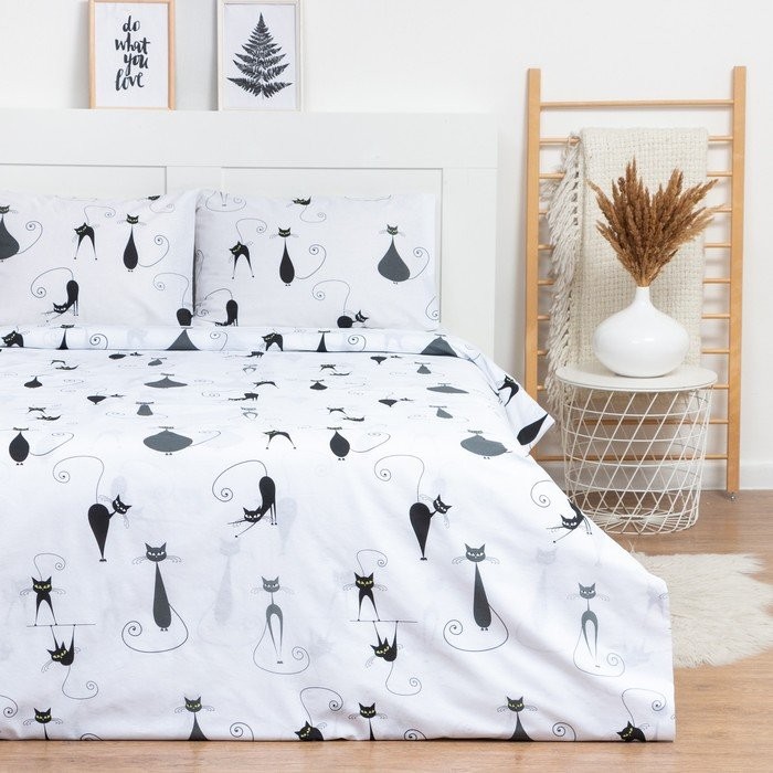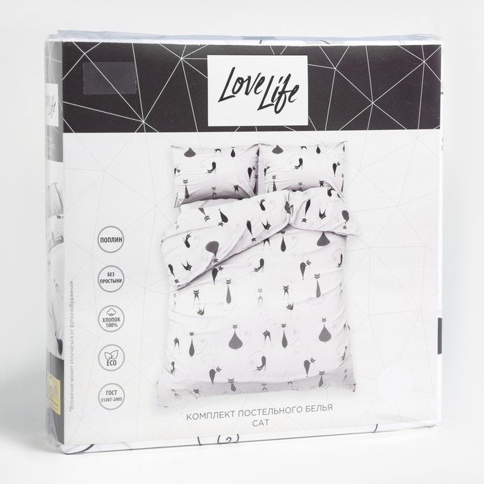 Постельное бельё Евро LoveLife Cat пододеяльник 200×217 см+наволочка 50*70 см-2шт, поплин, 125 г/м²