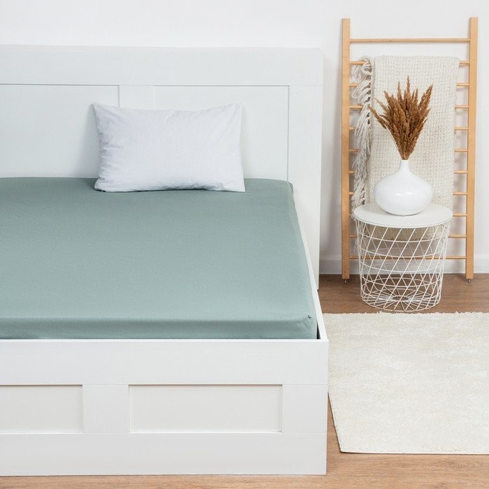 Простыня на резинке Этель 180х200×25, цвет серо-зелёный, 100% хлопок, бязь 125г/м2