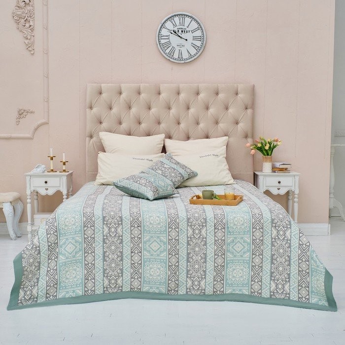 Покрывало хлопковое Этель «Инди» 200×240 см, цвет серо-зелёный, 100% хлопок, 300гр/м2