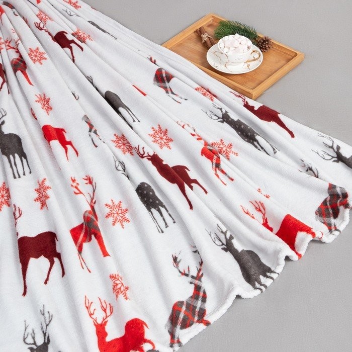 Плед Этель «Олени» 150*200 см,100% п/э, корал-флис 220 гр/м2
