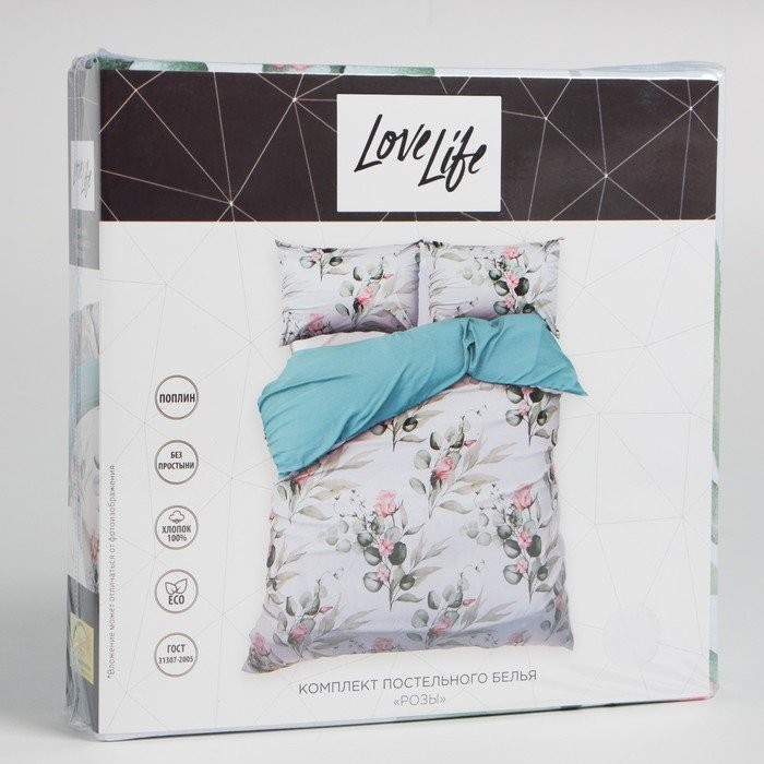 КПБ евро LoveLife «Розы»: пододеяльник 200*217см+наволочка 70*70см-2шт, поплин, 125 г/м²