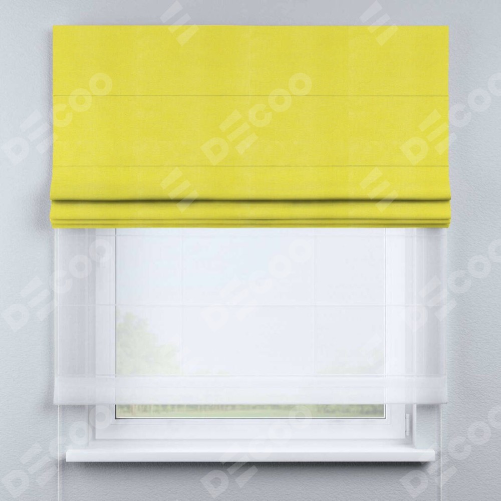Римская штора «Кортин» день-ночь, ткань вельвет светло-желтый