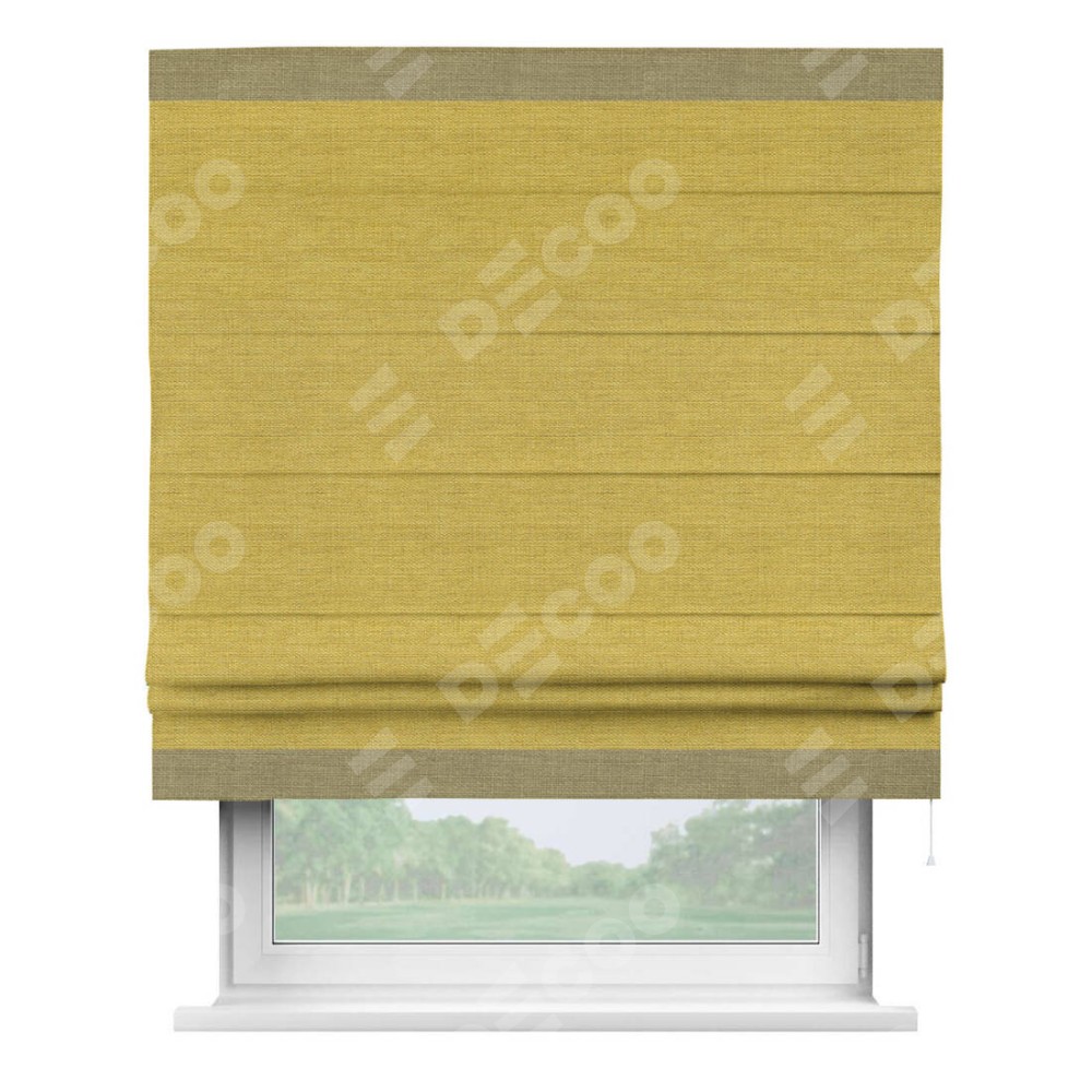 Римская штора «Кортин» с кантом Горизонт, для проема, ткань лён светло-салатовый