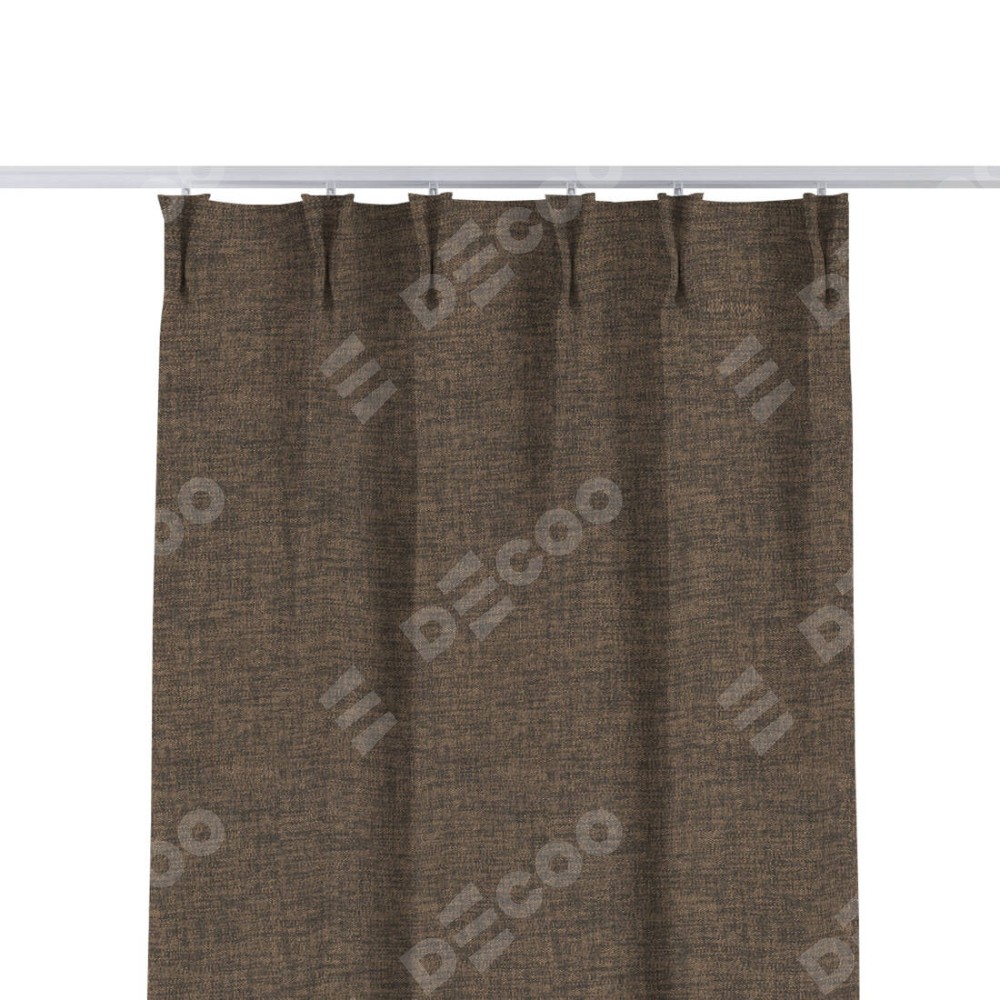 Комплект прямых штор, от производителя «Cortin», пошиты из ткани рогожка димаут коричневый, артикул ткани 80420. С изнаночной стороны в верхней части штор пристрачивается шторная лента с декоративными складками «Кустик». Для создания элегантных складок прямые шторы шьются по стандарту с коэффициентом 1:2 (на 100 см. ширины проёма 200 см. ширины ткани).