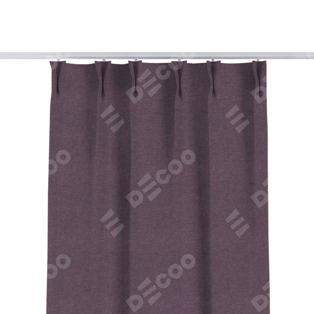 Комплект прямых штор, от производителя «Cortin», пошиты из ткани лён димаут светло-фиолетовый, артикул ткани 83034. С изнаночной стороны в верхней части штор пристрачивается шторная лента с декоративными складками «Кустик». Для создания элегантных складок прямые шторы шьются по стандарту с коэффициентом 1:2 (на 100 см. ширины проёма 200 см. ширины ткани).