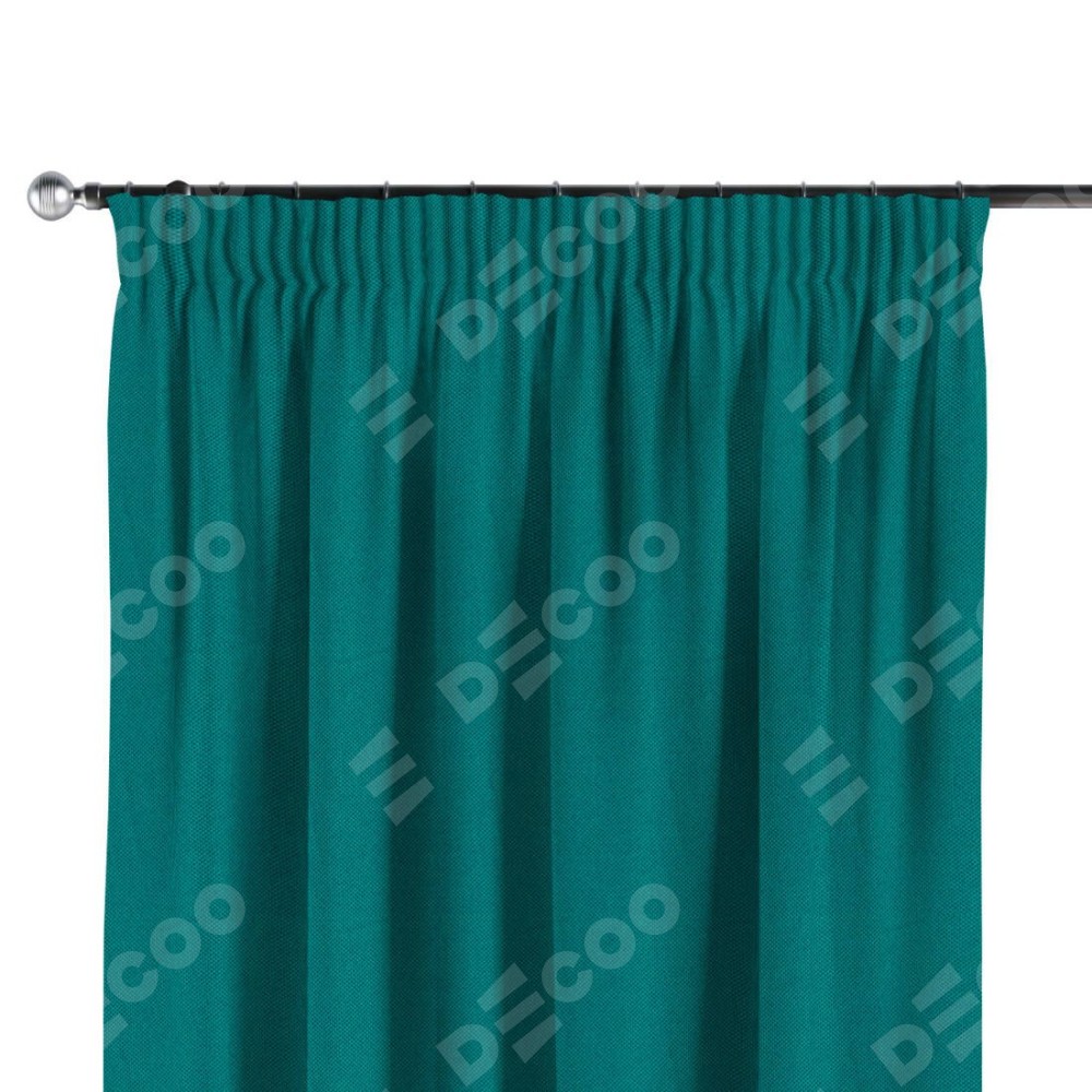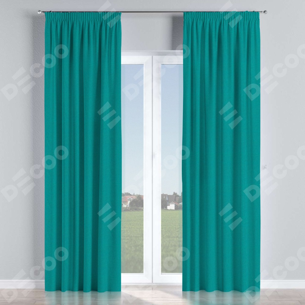 Комплект прямых штор, от производителя «Cortin», пошиты из ткани лён димаут тёмно-бирюзовый, артикул ткани 318. С изнаночной стороны в верхней части штор пристрачивается шторная лента с декоративными складками «Карандаш». Для создания элегантных складок прямые шторы шьются по стандарту с коэффициентом 1:2 (на 100 см. ширины проёма 200 см. ширины ткани).