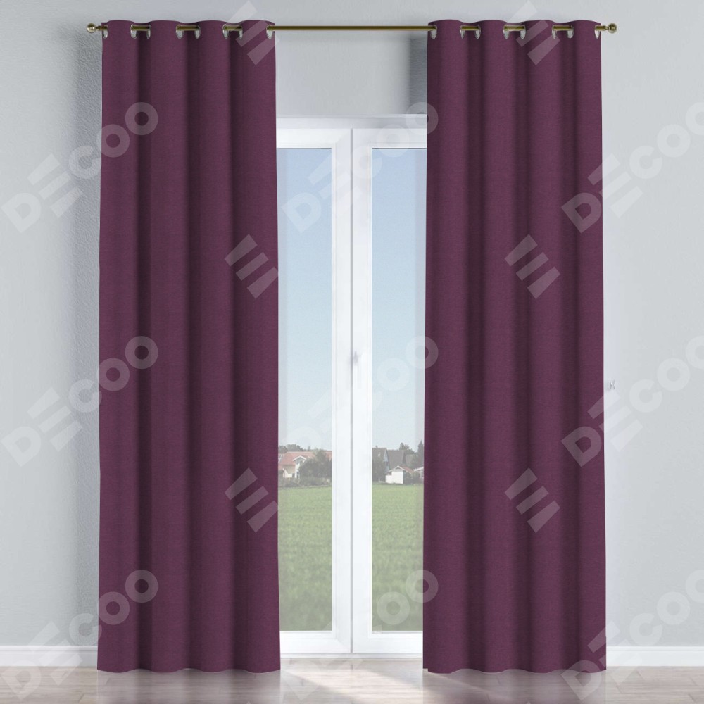 Комплект прямых штор, от производителя «Cortin», пошиты из ткани лён димаут фиолетовый, артикул ткани 8817. Данная модель пошита на люверсах, комплектуется на выбор круглым карнизом и подходит для монтажа на стену или потолок. Прямые шторы на люверсах шьются по стандарту с коэффициентом 1/2 (на 100 см. ширины проёма 200 см. ширины ткани), отличительным преимуществом данной модели является простой способ монтажа. Достаточно повесить ее на трубу и штора готова!