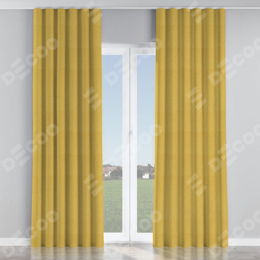 Комплект прямых штор, от производителя «Cortin», пошиты из ткани твид блэкаут пыльная горчица, артикул ткани 21588. С изнаночной стороны в верхней части штор пристрачивается шторная лента с декоративными складками «Волна». Для создания элегантных складок прямые шторы шьются по стандарту с коэффициентом 1:2 (на 100 см. ширины проёма 200 см. ширины ткани).