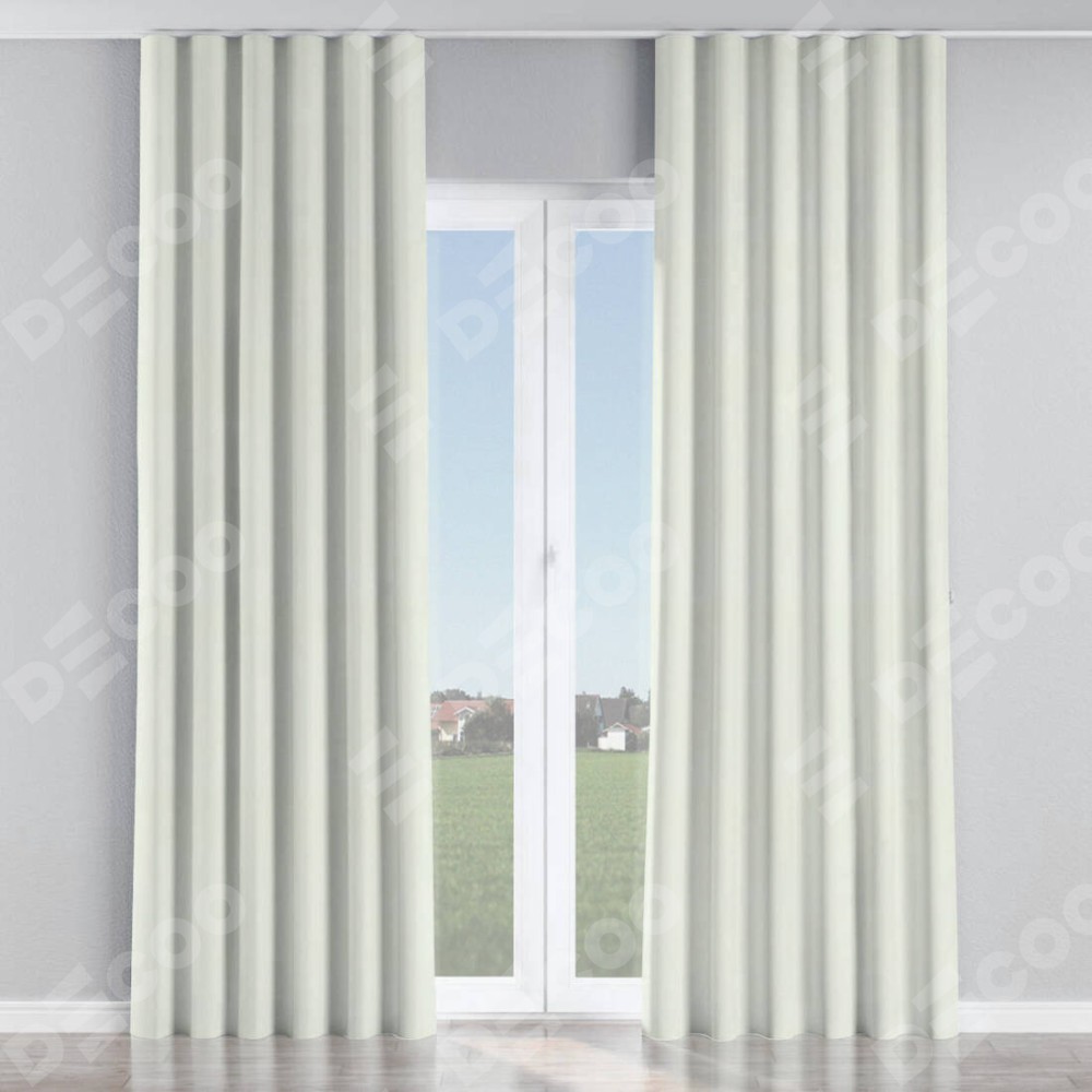 Комплект прямых штор, от производителя «Cortin», пошиты из ткани вельвет кремовый, артикул ткани 85524. С изнаночной стороны в верхней части штор пристрачивается шторная лента с декоративными складками «Волна». Для создания элегантных складок прямые шторы шьются по стандарту с коэффициентом 1:2 (на 100 см. ширины проёма 200 см. ширины ткани).