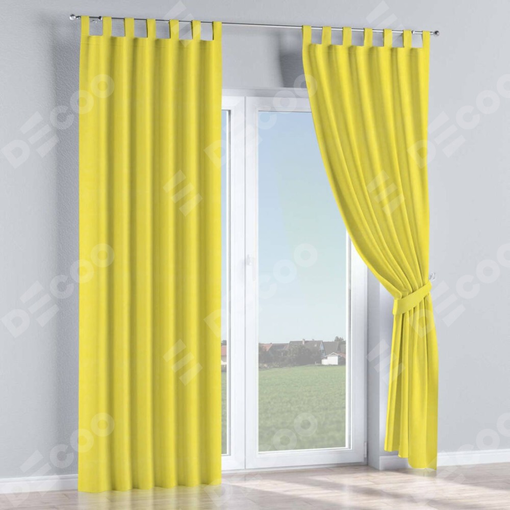 Комплект прямых штор, от производителя «Cortin», пошиты из ткани вельвет светло-желтый, артикул ткани 30997. Данная модель пошита на петлях, комплектуется на выбор круглым карнизом и подходит для монтажа на стену или потолок. Прямые шторы на петлях шьются по стандарту с коэффициентом 1/2 (на 100 см. ширины проёма 200 см. ширины ткани), отличительным преимуществом данной модели является простой способ монтажа. Достаточно повесить ее на трубу и штора готова!