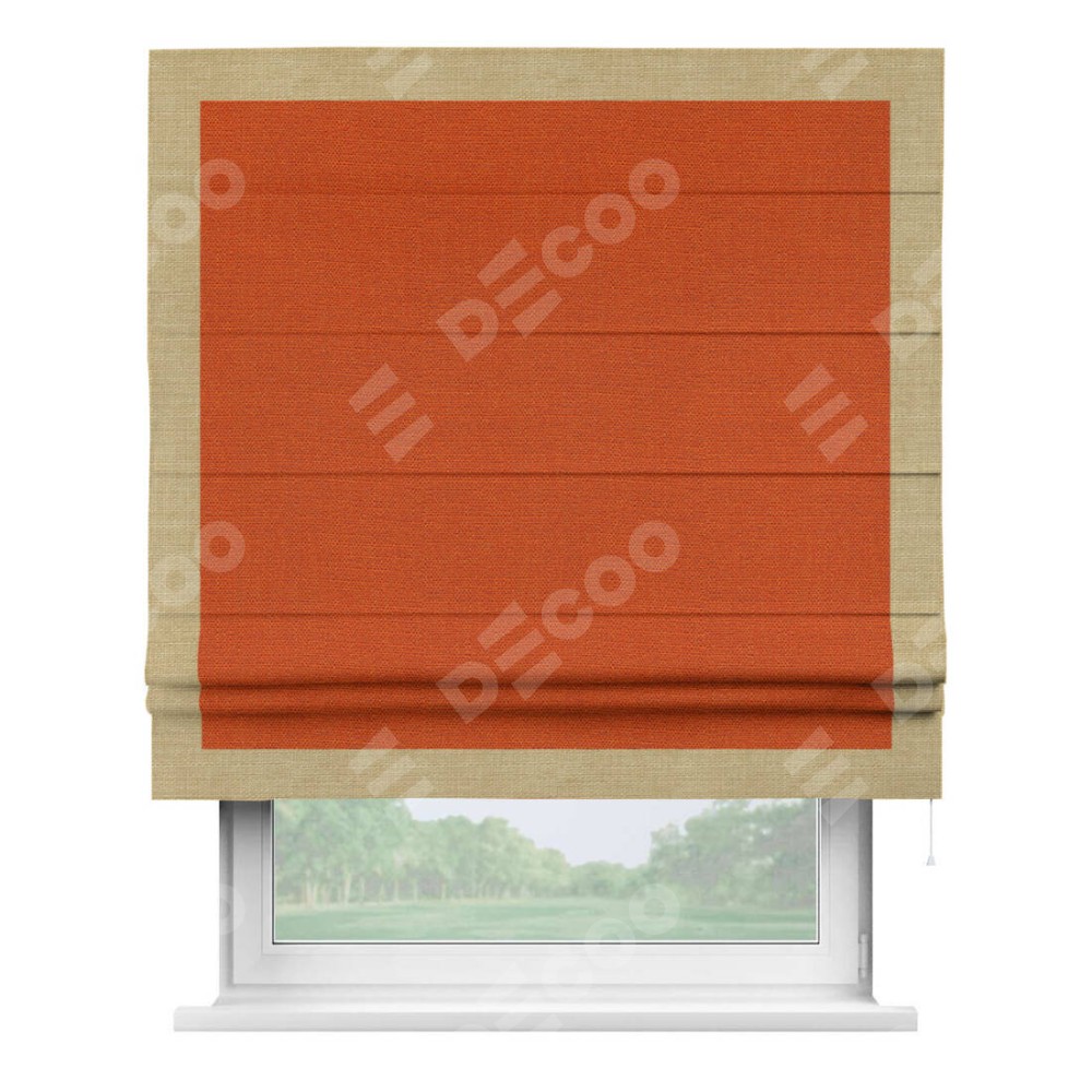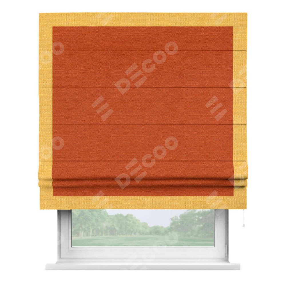 Римская штора «Кортин» с кантом Чесс, для проема, ткань лён терракотовый
