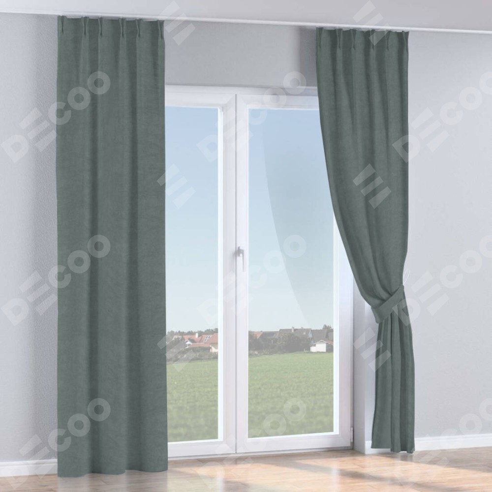 Комплект прямых штор, от производителя «Cortin», пошиты из ткани вельвет серый, артикул ткани 85542. С изнаночной стороны в верхней части штор пристрачивается шторная лента с декоративными складками «Кустик». Для создания элегантных складок прямые шторы шьются по стандарту с коэффициентом 1:2 (на 100 см. ширины проёма 200 см. ширины ткани).