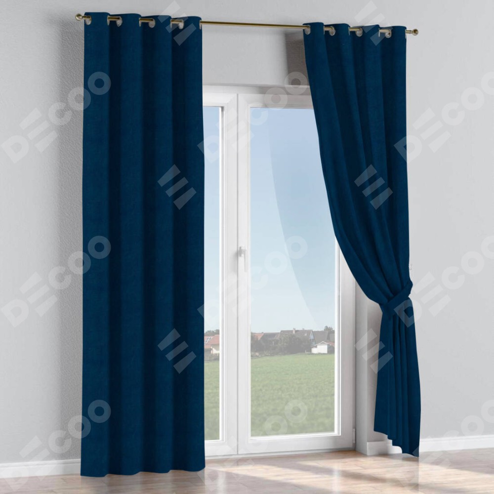 Комплект прямых штор, от производителя «Cortin», пошиты из ткани вельвет тёмно-синий, артикул ткани 14152. Данная модель пошита на люверсах, комплектуется на выбор круглым карнизом и подходит для монтажа на стену или потолок. Прямые шторы на люверсах шьются по стандарту с коэффициентом 1/2 (на 100 см. ширины проёма 200 см. ширины ткани), отличительным преимуществом данной модели является простой способ монтажа. Достаточно повесить ее на трубу и штора готова!