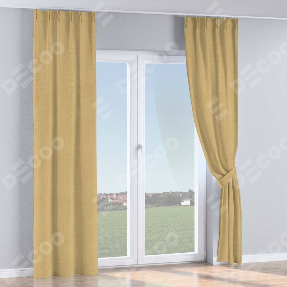 Комплект прямых штор, от производителя «Cortin», пошиты из ткани лён бежевый, артикул ткани 7442. С изнаночной стороны в верхней части штор пристрачивается шторная лента с декоративными складками «Кустик». Для создания элегантных складок прямые шторы шьются по стандарту с коэффициентом 1:2 (на 100 см. ширины проёма 200 см. ширины ткани).