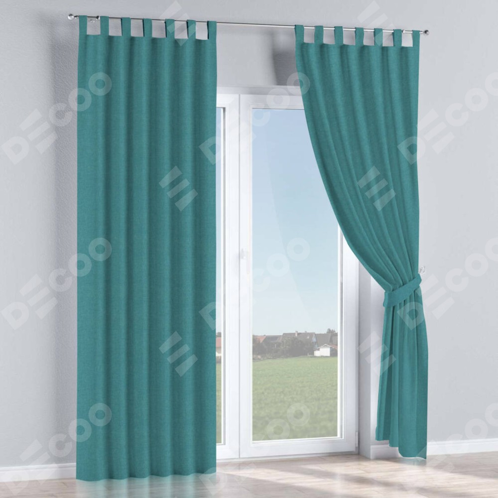 Комплект прямых штор, от производителя «Cortin», пошиты из ткани лён бирюзовый, артикул ткани 53436. Данная модель пошита на петлях, комплектуется на выбор круглым карнизом и подходит для монтажа на стену или потолок. Прямые шторы на петлях шьются по стандарту с коэффициентом 1/2 (на 100 см. ширины проёма 200 см. ширины ткани), отличительным преимуществом данной модели является простой способ монтажа. Достаточно повесить ее на трубу и штора готова!