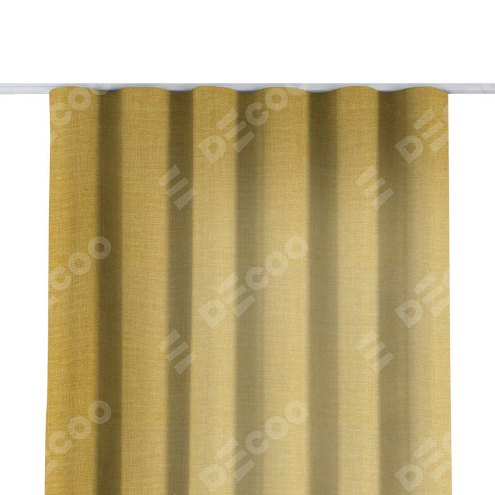 Комплект прямых штор, от производителя «Cortin», пошиты из ткани лён горчичный, артикул ткани 74740. С изнаночной стороны в верхней части штор пристрачивается шторная лента с декоративными складками «Волна». Для создания элегантных складок прямые шторы шьются по стандарту с коэффициентом 1:2 (на 100 см. ширины проёма 200 см. ширины ткани).