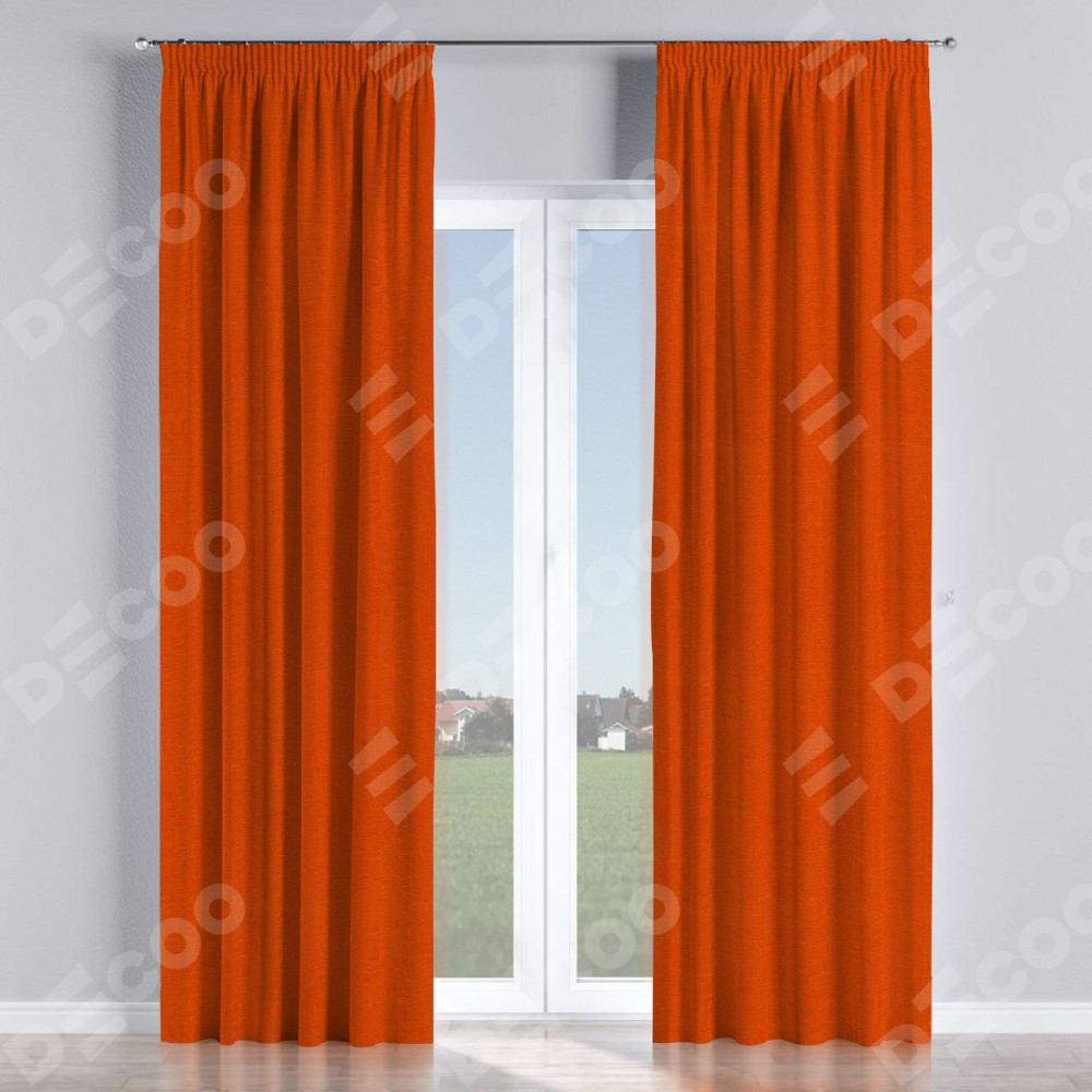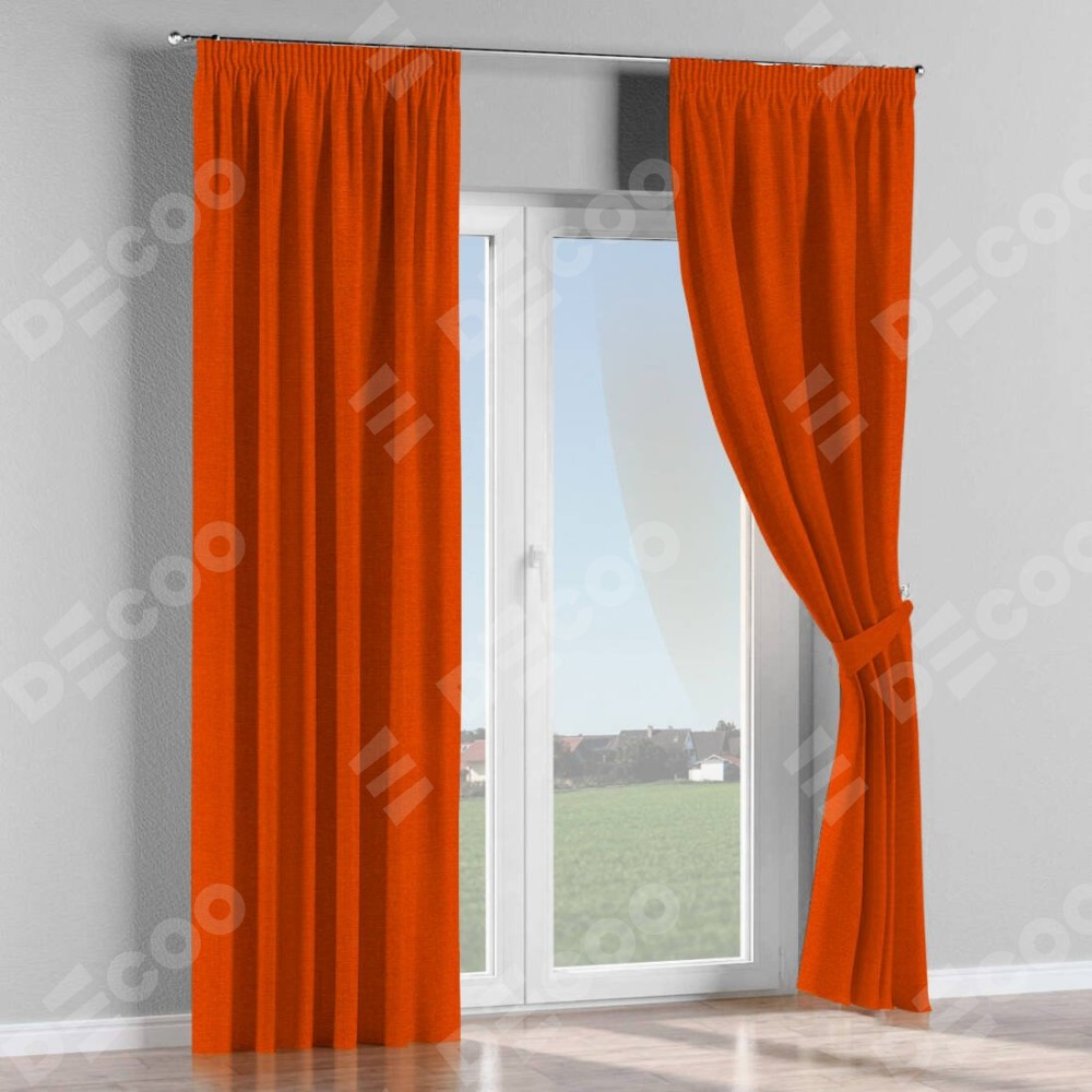 Комплект прямых штор, от производителя «Cortin», пошиты из ткани лён терракотовый, артикул ткани 53440. С изнаночной стороны в верхней части штор пристрачивается шторная лента с декоративными складками «Карандаш». Для создания элегантных складок прямые шторы шьются по стандарту с коэффициентом 1:2 (на 100 см. ширины проёма 200 см. ширины ткани).