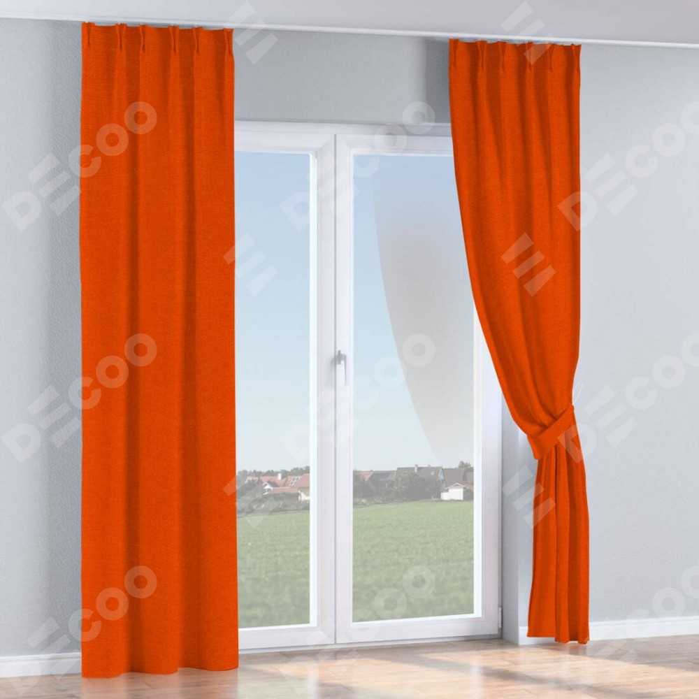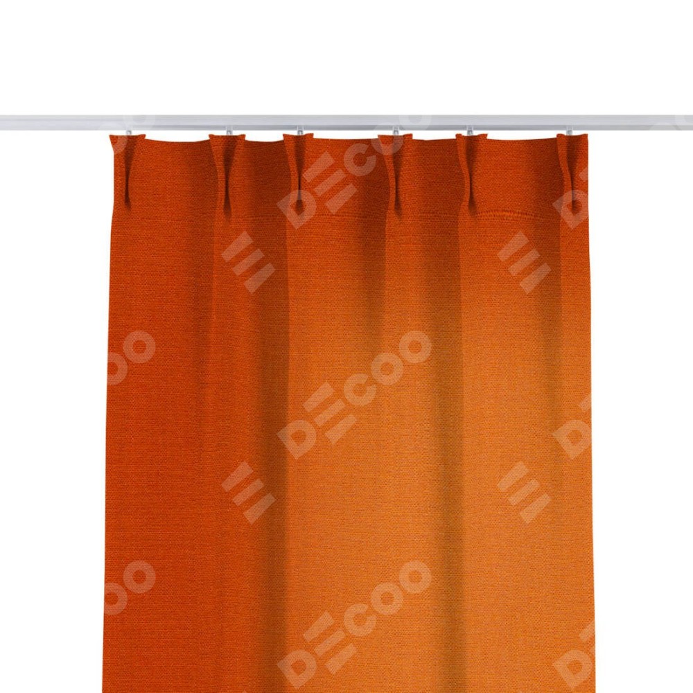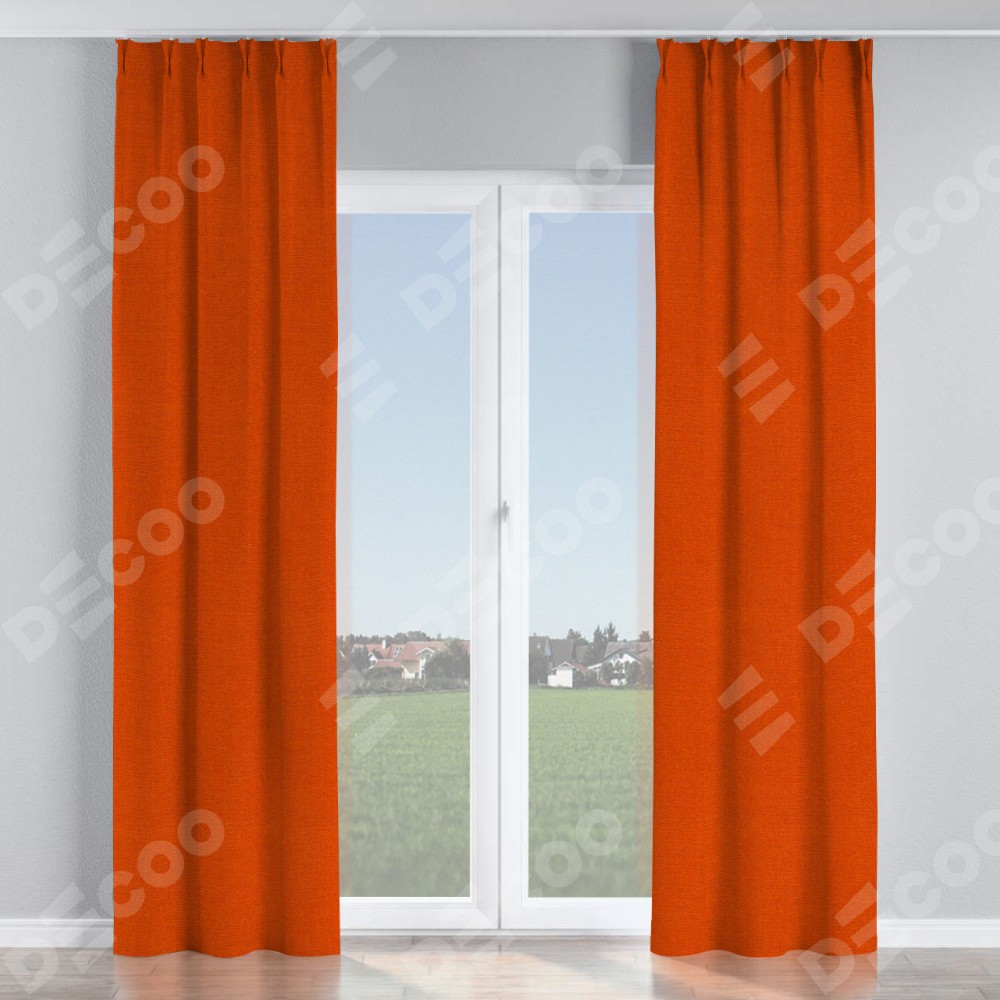 Комплект прямых штор, от производителя «Cortin», пошиты из ткани лён терракотовый, артикул ткани 53440. С изнаночной стороны в верхней части штор пристрачивается шторная лента с декоративными складками «Кустик». Для создания элегантных складок прямые шторы шьются по стандарту с коэффициентом 1:2 (на 100 см. ширины проёма 200 см. ширины ткани).