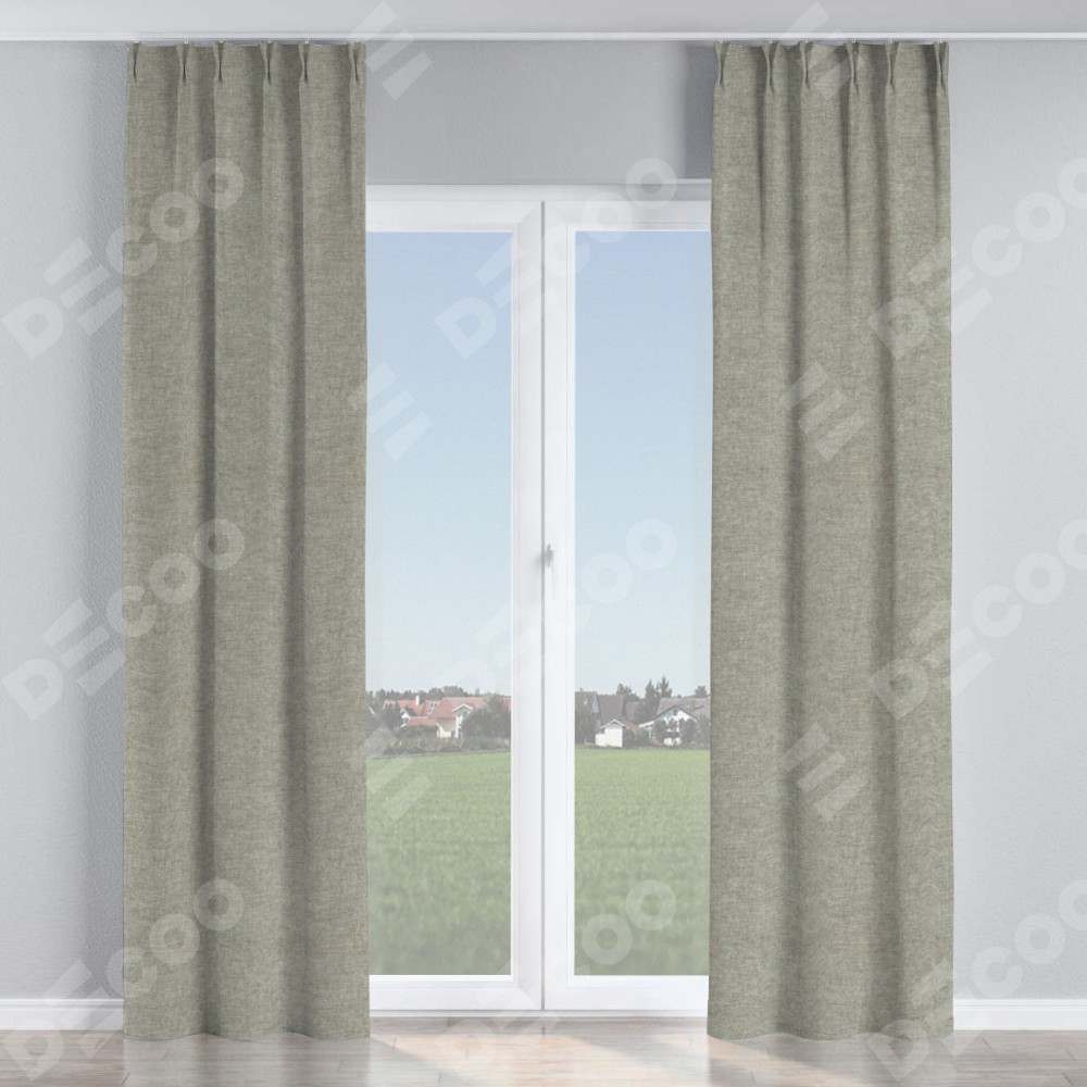Комплект прямых штор, от производителя «Cortin», пошиты из ткани лён кашемир серый, артикул ткани 17208. С изнаночной стороны в верхней части штор пристрачивается шторная лента с декоративными складками «Кустик». Для создания элегантных складок прямые шторы шьются по стандарту с коэффициентом 1:2 (на 100 см. ширины проёма 200 см. ширины ткани).
