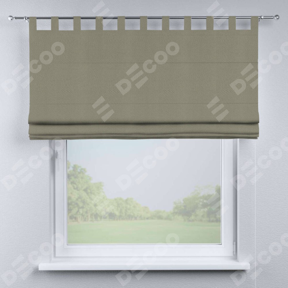 Римская штора производителя «Cortin», используется для проёма, пошита из ткани блэкаут однотонный серо-зелёный, артикул ткани 29568. Данная модель пошита на петлях, комплектуется на выбор круглым карнизом и подходит для монтажа на стену. Римская штора на петлях имеет простую систему регулировки высоты, отличительным преимуществом данной модели является простой способ монтажа. Достаточно повесить ее на трубу и штора готова!
