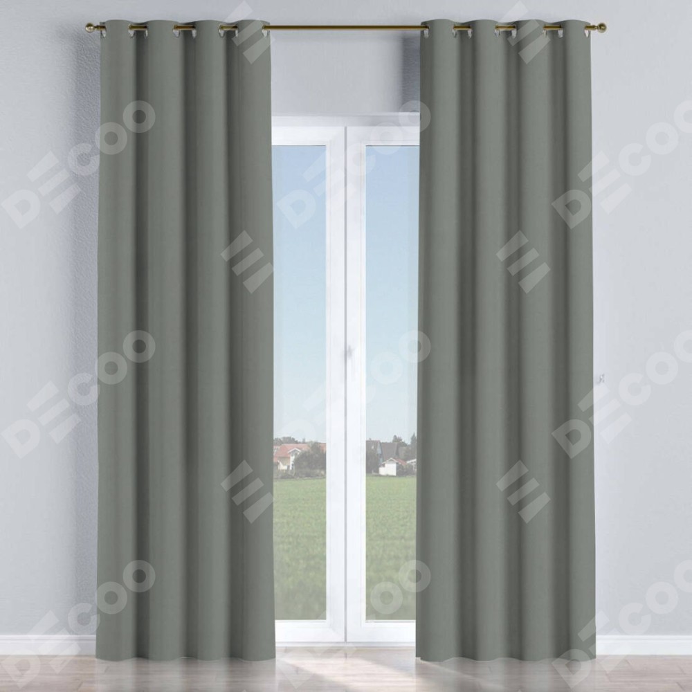 Комплект прямых штор, от производителя «Cortin», пошиты из ткани блэкаут однотонный тёмно-серый, артикул ткани 18077. Данная модель пошита на люверсах, комплектуется на выбор круглым карнизом и подходит для монтажа на стену или потолок. Прямые шторы на люверсах шьются по стандарту с коэффициентом 1/2 (на 100 см. ширины проёма 200 см. ширины ткани), отличительным преимуществом данной модели является простой способ монтажа. Достаточно повесить ее на трубу и штора готова!