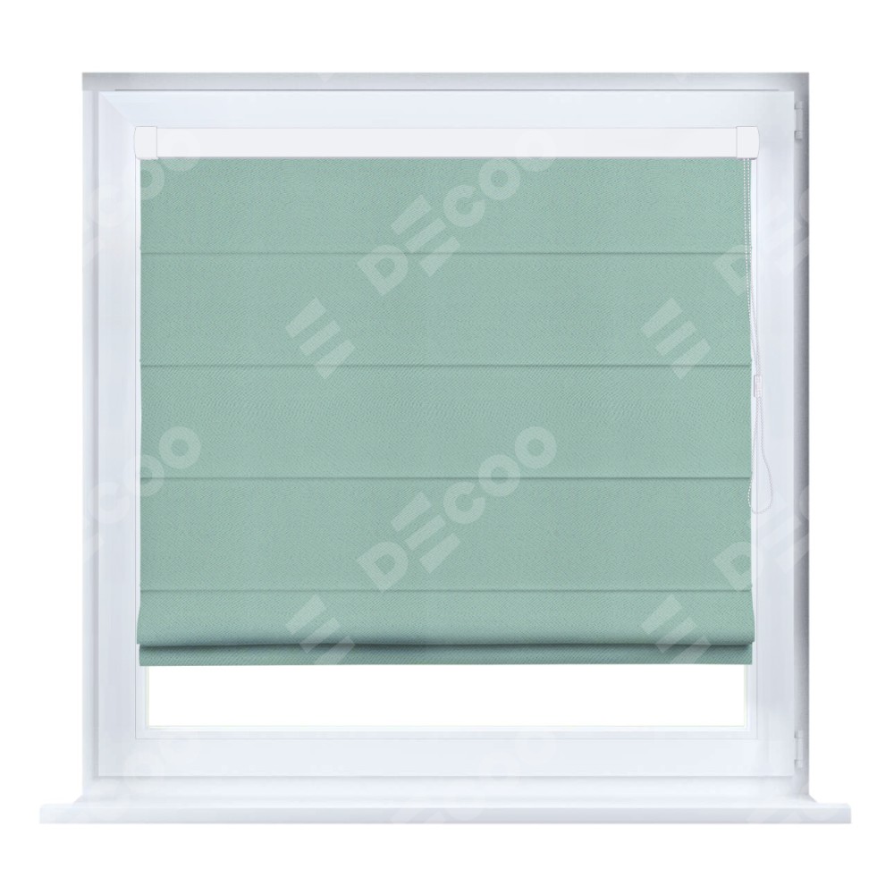 Римская штора кассетного типа, производителя «Cortin», устанавливается только на пластиковые окна и прилегает к стеклопакету, пошита из ткани блэкаут однотонный ментоловый, артикул 29584.
