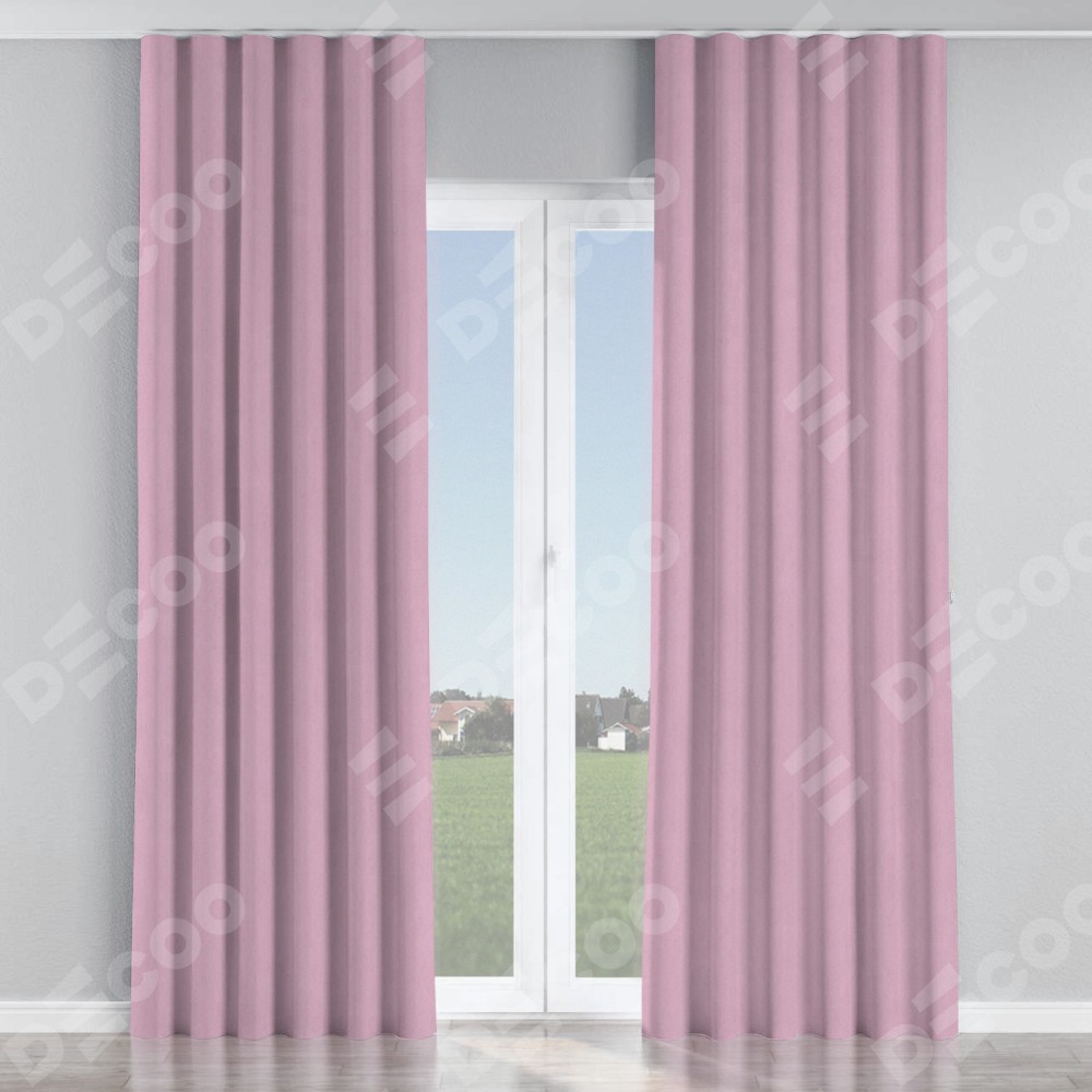 Комплект прямых штор, от производителя «Cortin», пошиты из ткани pipa блэкаут розовый, артикул ткани 12091. С изнаночной стороны в верхней части штор пристрачивается шторная лента с декоративными складками «Волна». Для создания элегантных складок прямые шторы шьются по стандарту с коэффициентом 1:2 (на 100 см. ширины проёма 200 см. ширины ткани).