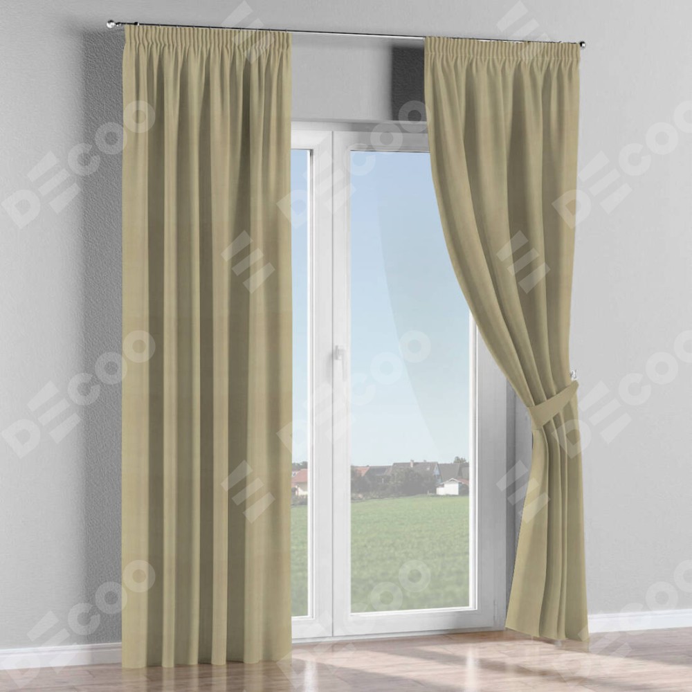 Комплект прямых штор, от производителя «Cortin», пошиты из ткани pipa блэкаут светло-бежевый, артикул ткани 02. С изнаночной стороны в верхней части штор пристрачивается шторная лента с декоративными складками «Карандаш». Для создания элегантных складок прямые шторы шьются по стандарту с коэффициентом 1:2 (на 100 см. ширины проёма 200 см. ширины ткани).