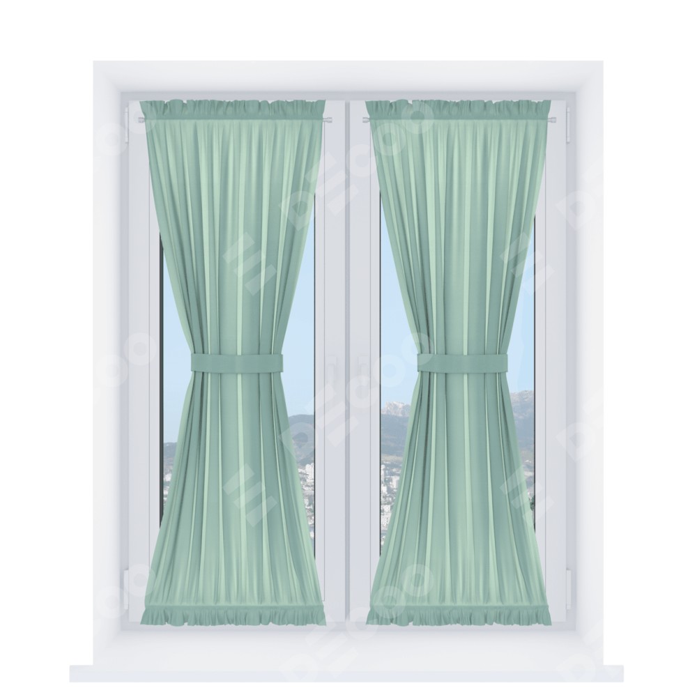 Штора «Песочные часы» производителя «Cortin», используется для створок окон и дверей, пошита из ткани блэкаут однотонный ментоловый, артикул ткани 29584.