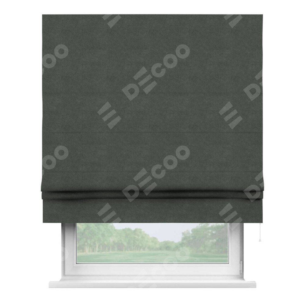 Римская штора производителя «Cortin», используется для проёма, пошита из ткани cotton блэкаут серый, артикул ткани 35279. Имеет универсальный механизм и подходит для монтажа: на потолок, на стену и в нишу.
