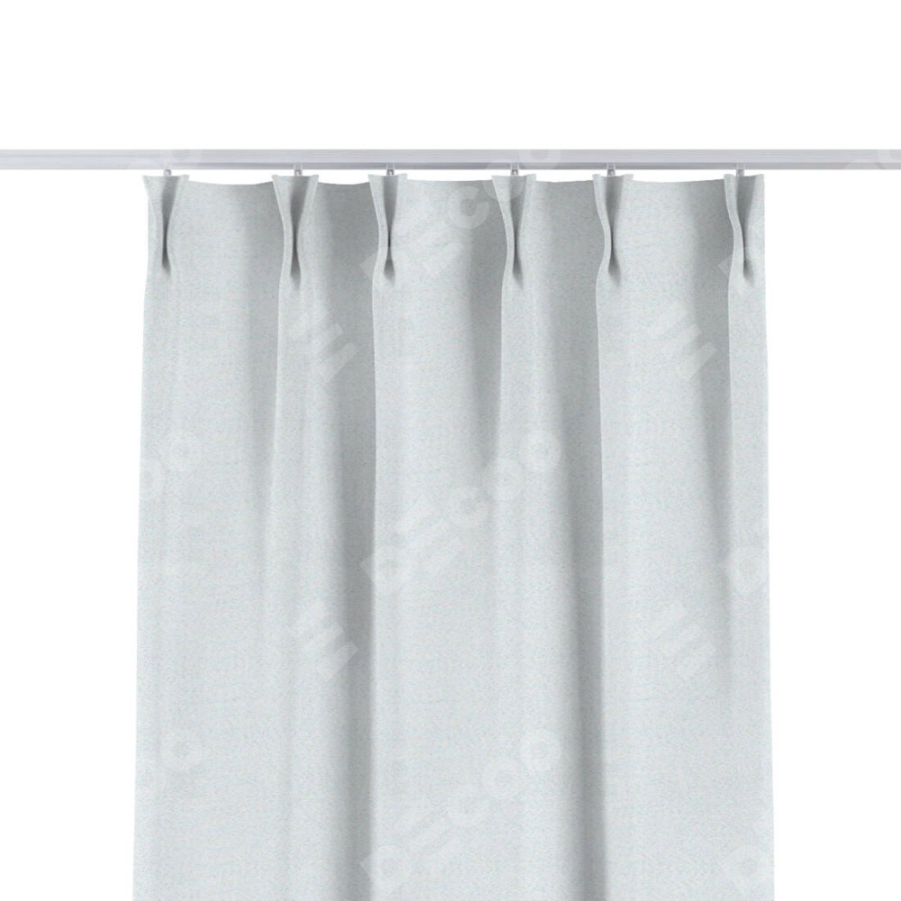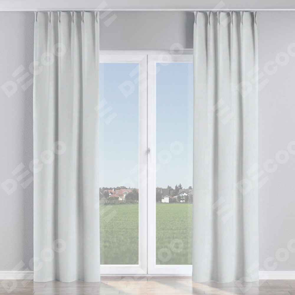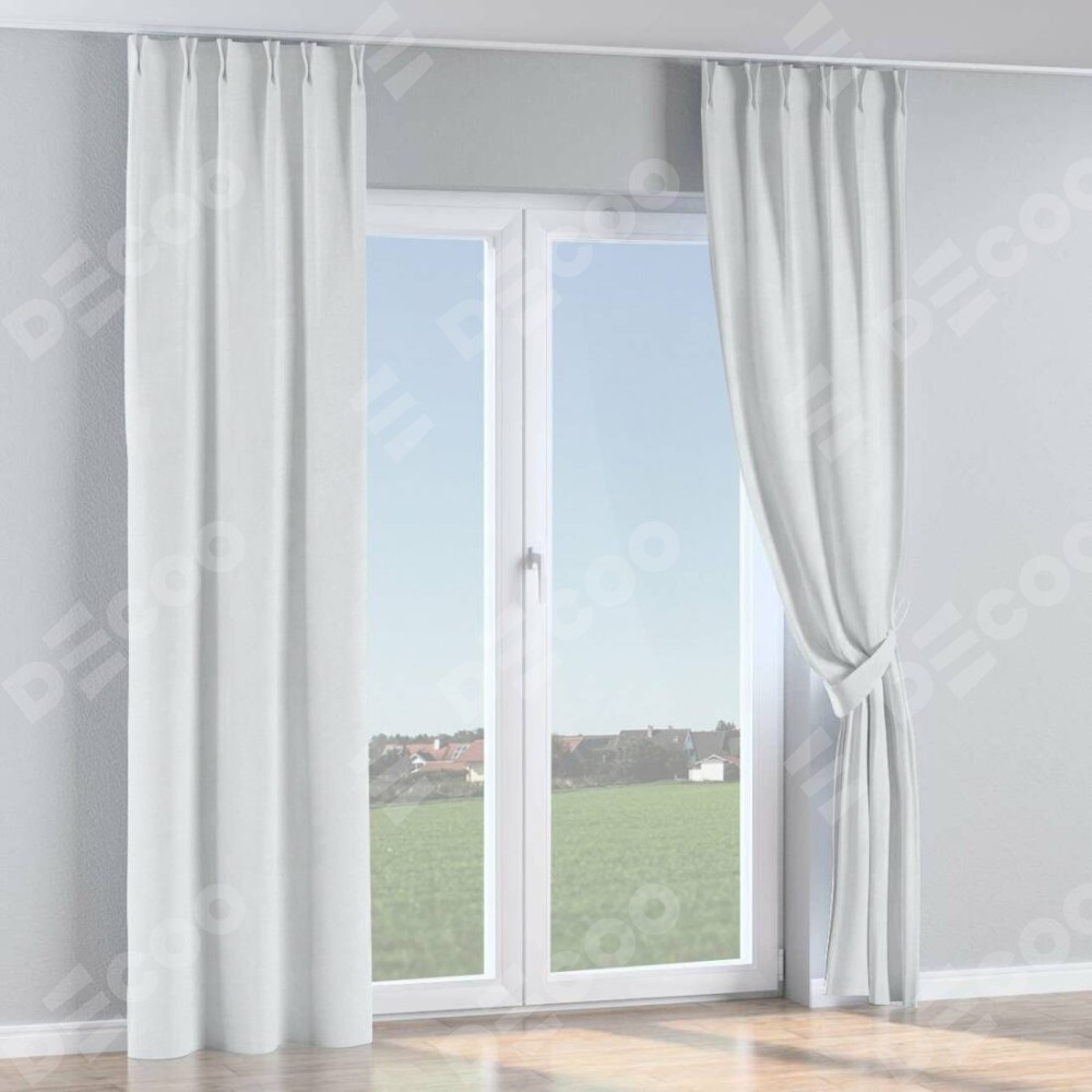 Комплект прямых штор, от производителя «Cortin», пошиты из ткани блэкаут однотонный дымчато-белый, артикул ткани 101. С изнаночной стороны в верхней части штор пристрачивается шторная лента с декоративными складками «Кустик». Для создания элегантных складок прямые шторы шьются по стандарту с коэффициентом 1:2 (на 100 см. ширины проёма 200 см. ширины ткани).
