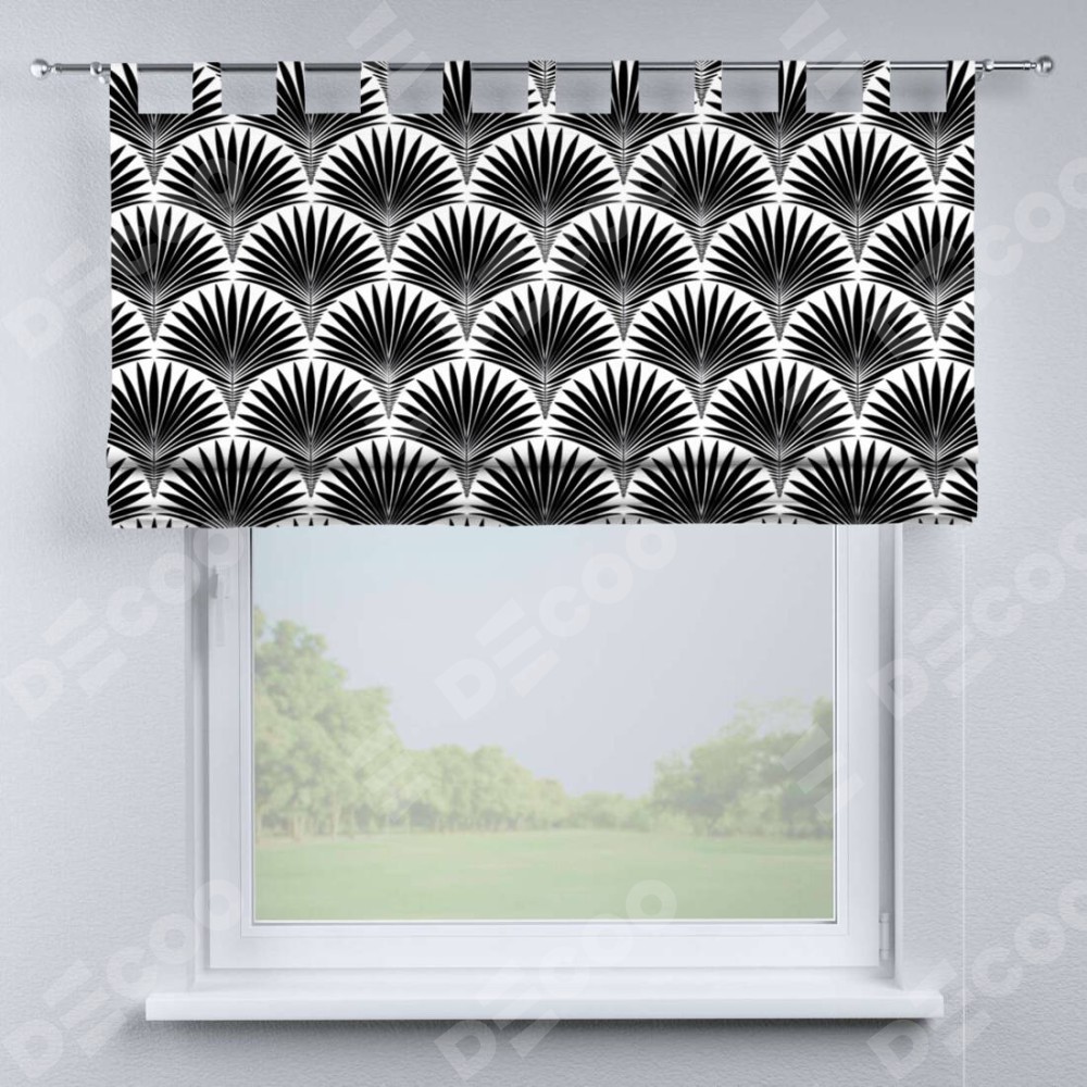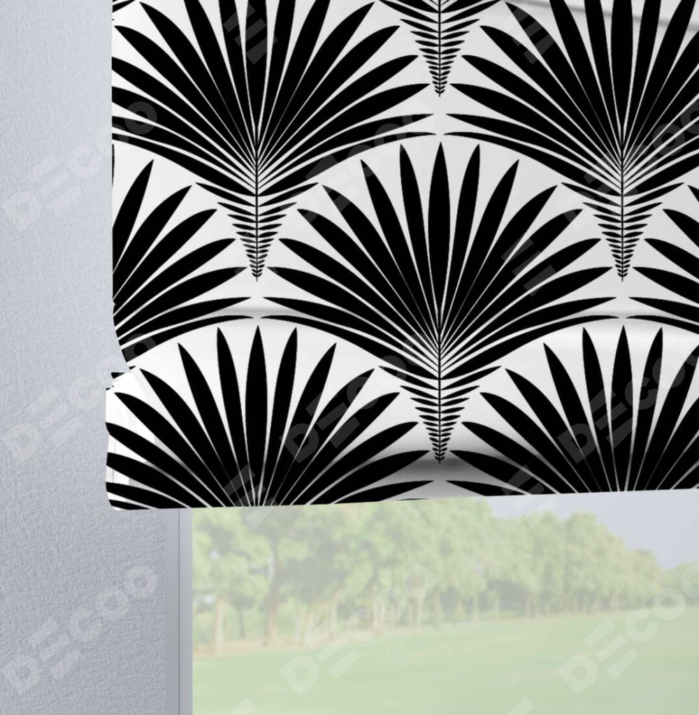 Римская штора производителя «Cortin», используется для проёма, пошита из ткани блэкаут с нанесением сублимационной печати «Арт-деко листья черный». Данная модель пошита на петлях, комплектуется на выбор круглым карнизом и подходит для монтажа на стену. Римская штора на петлях имеет простую систему регулировки высоты, отличительным преимуществом данной модели является простой способ монтажа. Достаточно повесить ее на трубу и штора готова!