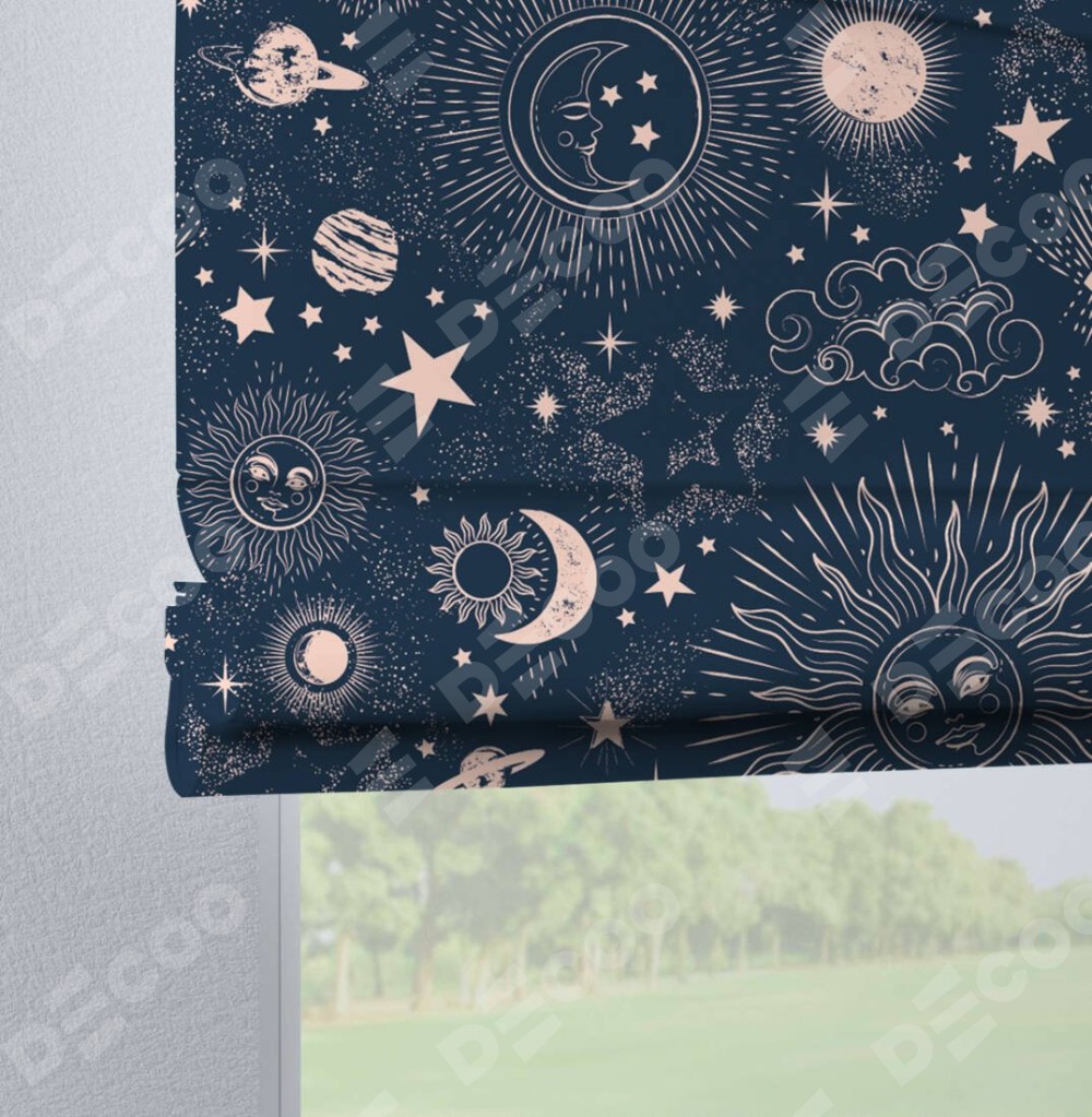 Римская штора на петлях «Звёзды и планеты» предоставлена в следующих характеристиках: