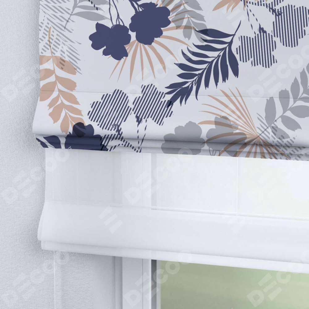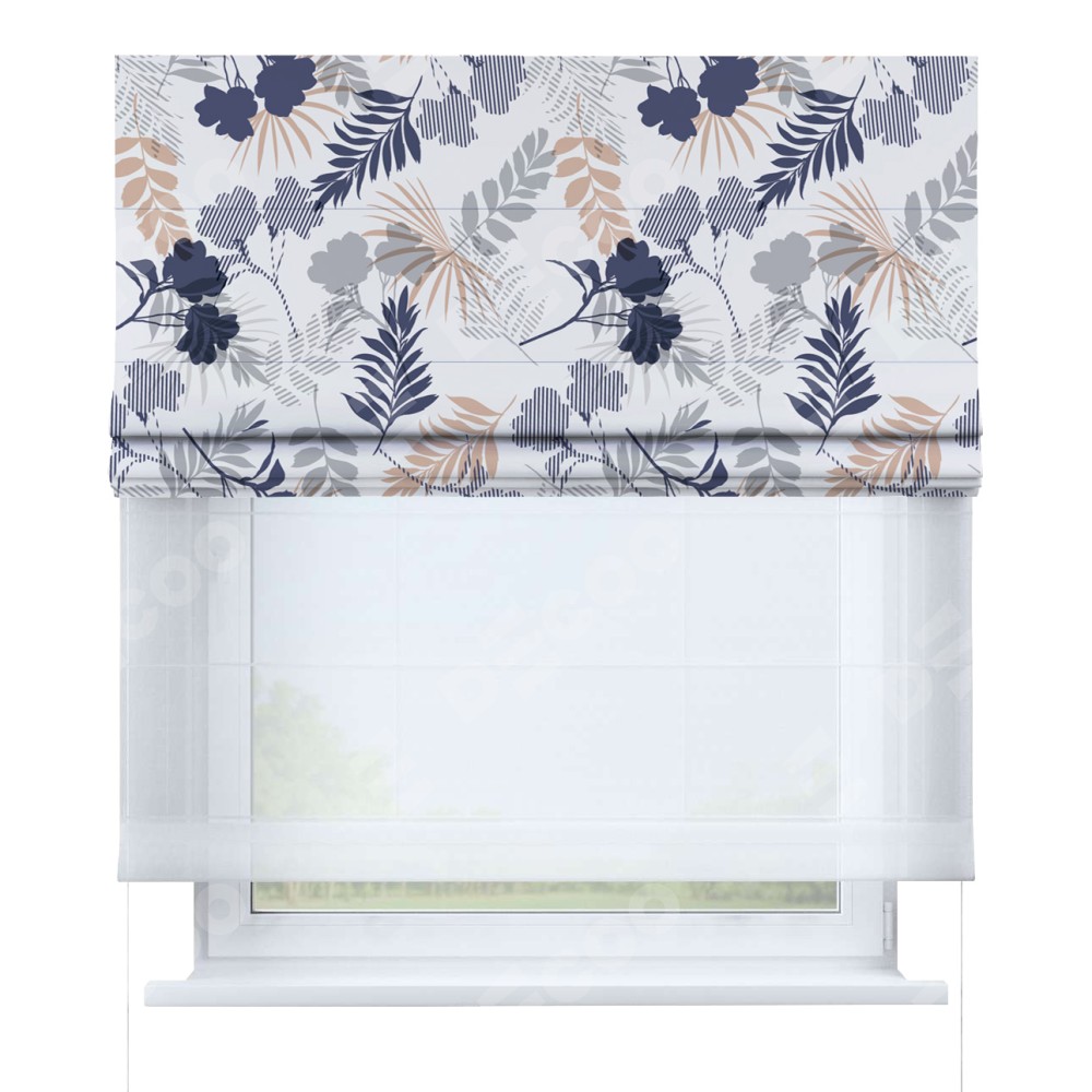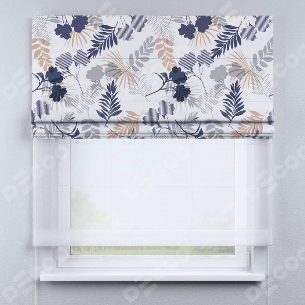 Римская штора день-ночь производителя «Cortin», используется для проёма, пошита из двух полотен, с лицевой блэкаут с нанесением сублимационной печати «Чарующий сад», вторая ткань тюль (по стандарту комплектуется тюль белого цвета артикул V-01). Имеет универсальный механизм и подходит для монтажа: на потолок, на стену и в нишу.