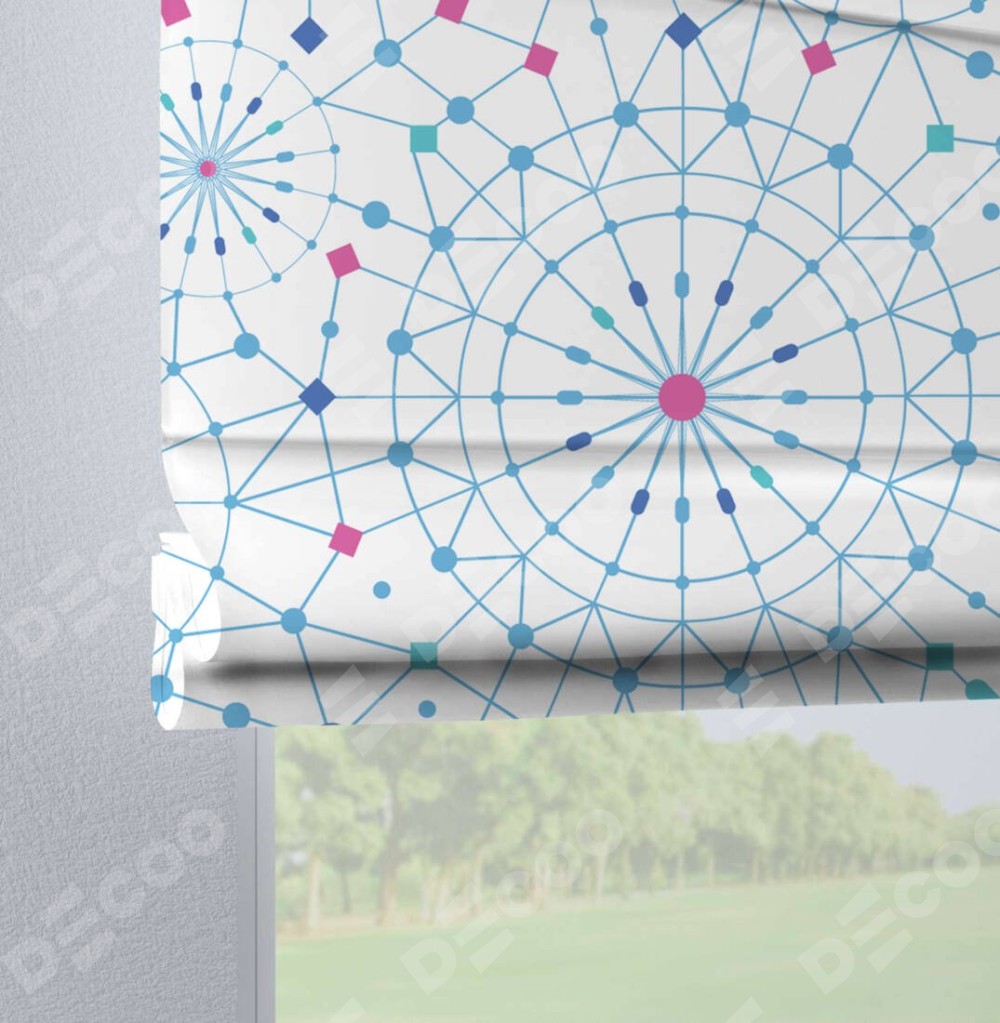 Римская штора производителя «Cortin», используется для проёма, пошита из ткани блэкаут с нанесением сублимационной печати «Круги и линии». Данная модель пошита на петлях, комплектуется на выбор круглым карнизом и подходит для монтажа на стену. Римская штора на петлях имеет простую систему регулировки высоты, отличительным преимуществом данной модели является простой способ монтажа. Достаточно повесить ее на трубу и штора готова!