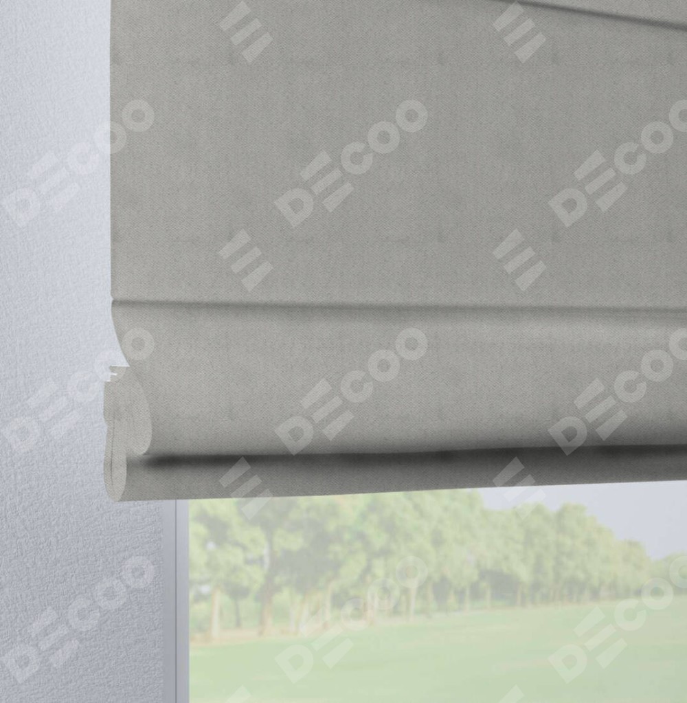 Римская штора производителя «Cortin», используется для проёма, пошита из ткани блэкаут с блеском тёмно-серый, артикул ткани 34634. Изнаночная сторона материала черного цвета, что обеспечивает необходимую светонепроницаемость. Данная модель пошита на петлях, комплектуется на выбор круглым карнизом и подходит для монтажа на стену. Римская штора на петлях имеет простую систему регулировки высоты, отличительным преимуществом данной модели является простой способ монтажа. Достаточно повесить ее на трубу и штора готова!