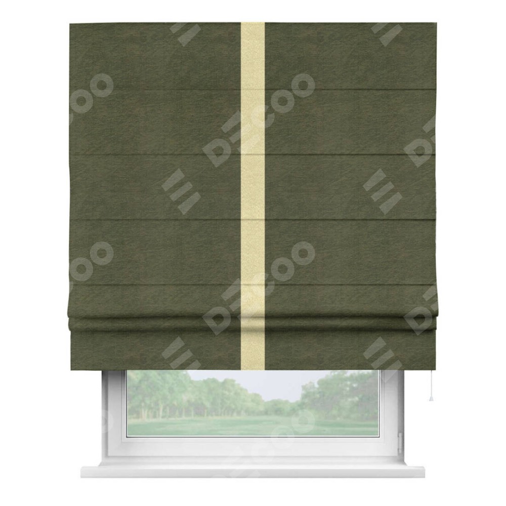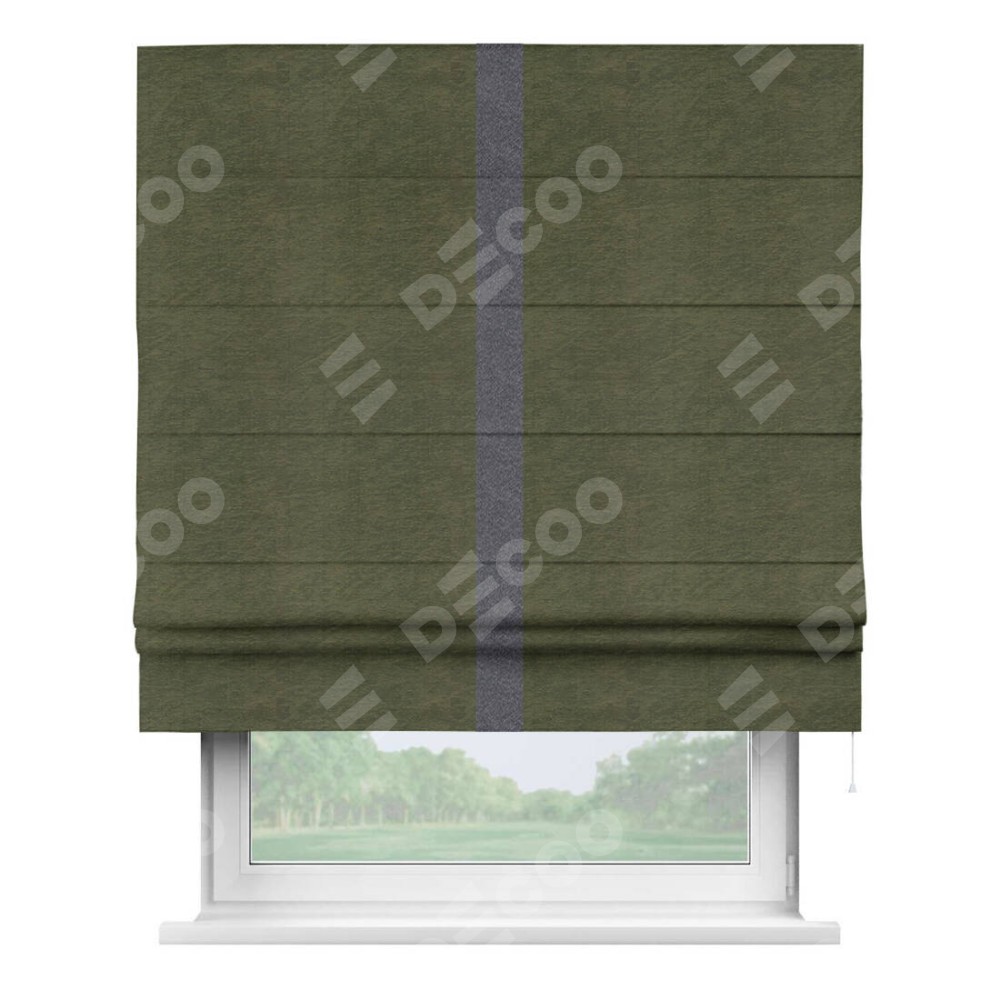 Римская штора «Кортин» с кантом Хайвэй, для проема, ткань софт однотонный зелёный