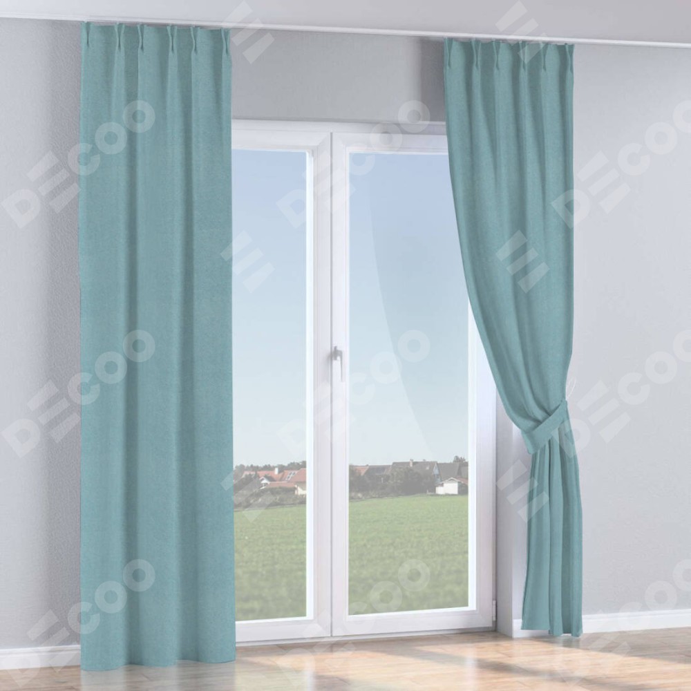 Комплект прямых штор, от производителя «Cortin», пошиты из ткани блэкаут с блеском синий, артикул ткани 34625. С изнаночной стороны в верхней части штор пристрачивается шторная лента с декоративными складками «Кустик». Обратная сторона основного материала черного цвета, что обеспечивает необходимую светонепроницаемость. Для создания элегантных складок прямые шторы шьются по стандарту с коэффициентом 1:2 (на 100 см. ширины проёма 200 см. ширины ткани).