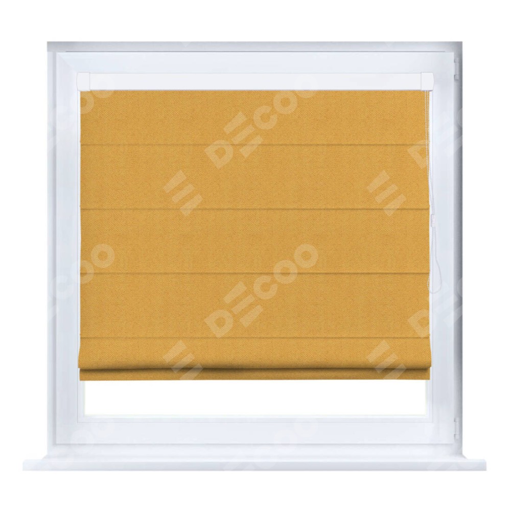 Римская штора производителя «Cortin», устанавливается на створку окна, пошита из ткани блэкаут тиснение с блеском золотой, артикул 34626. Изнаночная сторона материала черного цвета, что обеспечивает необходимую светонепроницаемость. Штора шьётся по индивидуальным размерам, для данного типа римской шторы возможная ширина от 35 до 150 см., высота до 250 см.