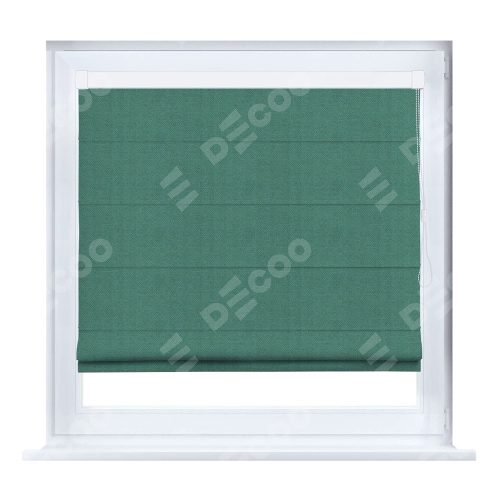Римская штора производителя «Cortin», устанавливается на створку окна, пошита из ткани блэкаут тиснение с блеском изумрудный, артикул 34628. Изнаночная сторона материала черного цвета, что обеспечивает необходимую светонепроницаемость. Штора шьётся по индивидуальным размерам, для данного типа римской шторы возможная ширина от 35 до 150 см., высота до 250 см.