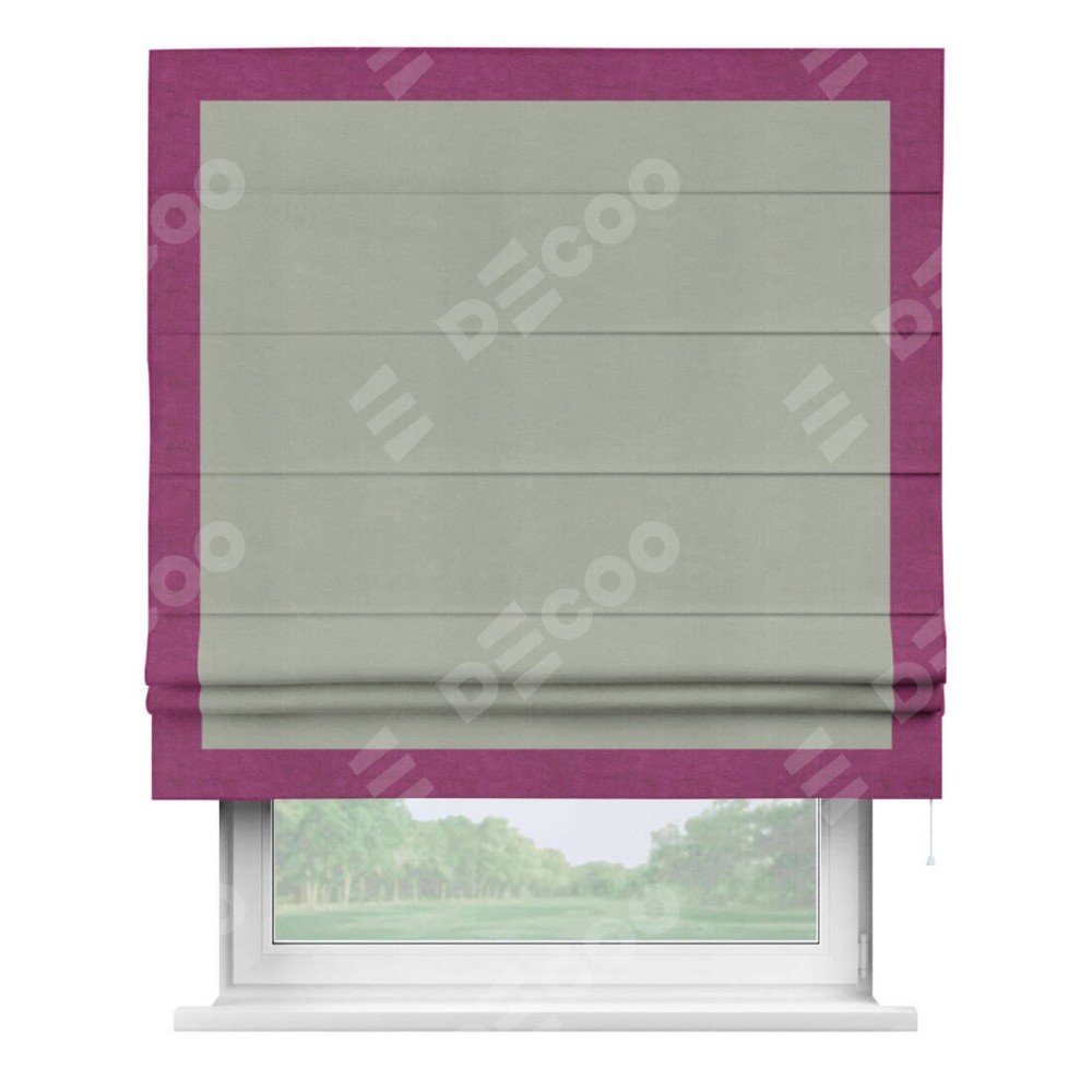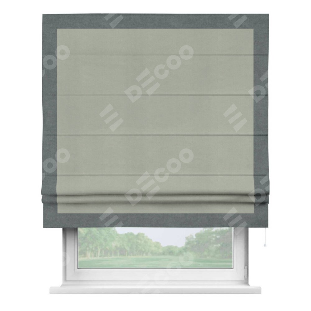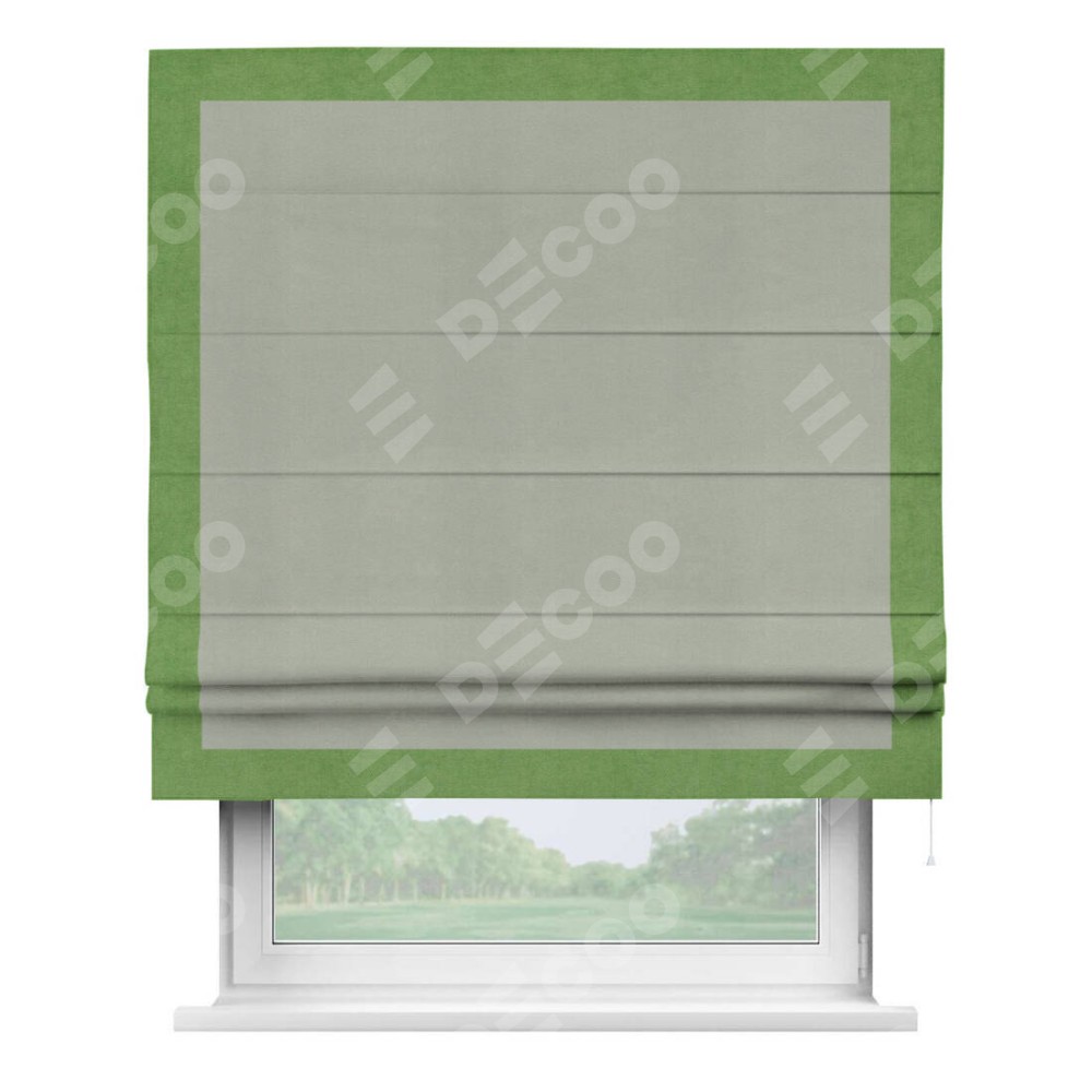 Римская штора «Кортин» с кантом Чесс, для проема, ткань вельвет cветло-серый