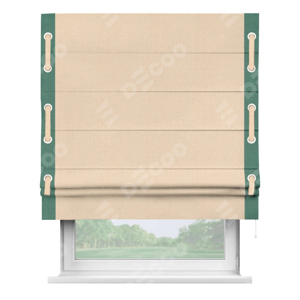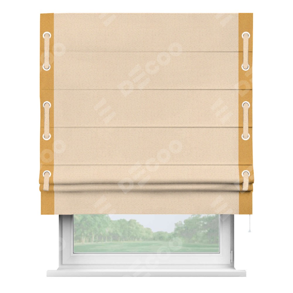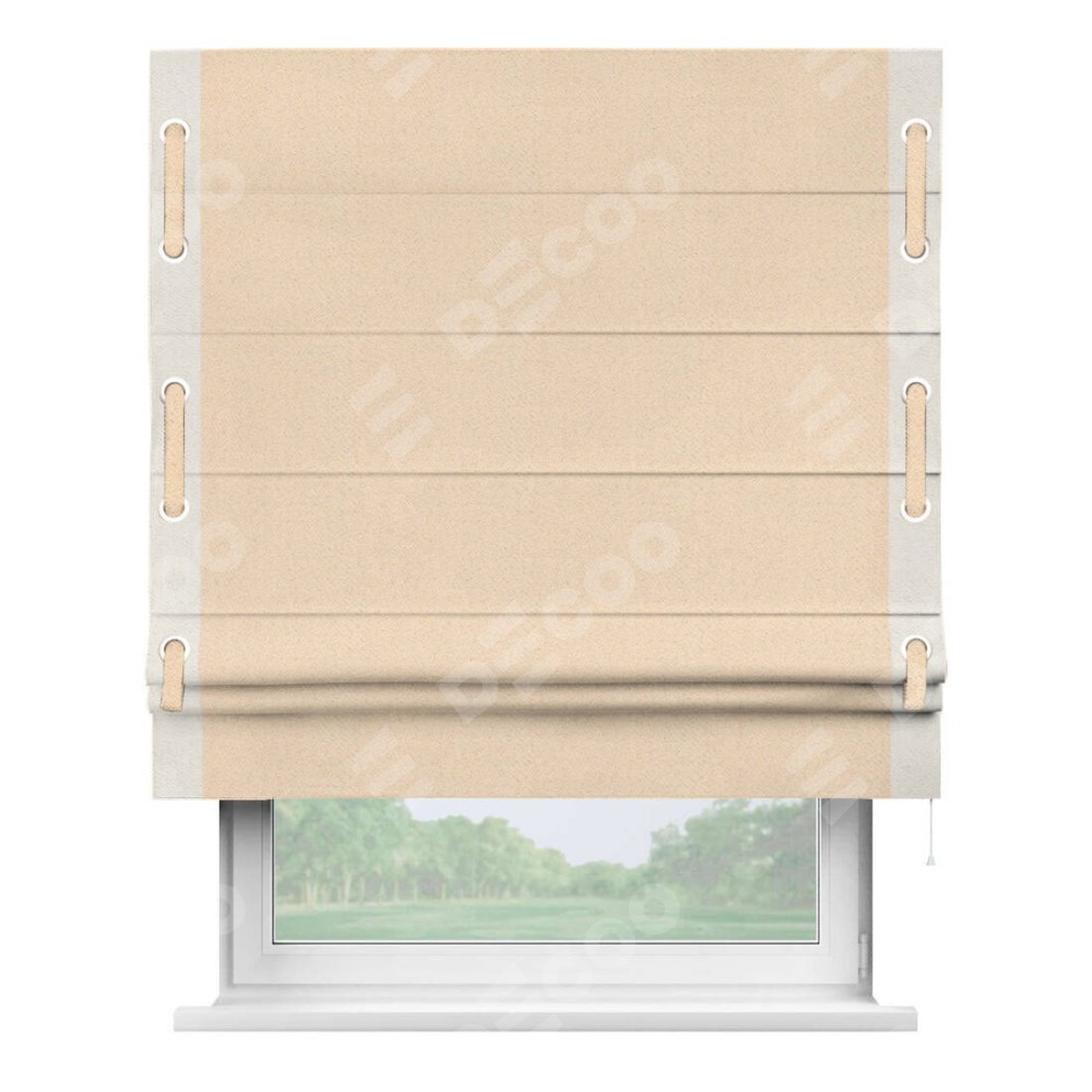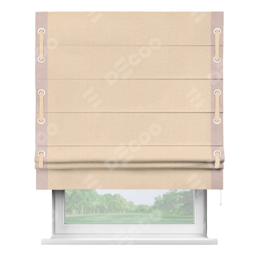 Римская штора «Кортин» с кантом Стрим Дуо (люверсы с пояском), для проема, ткань блэкаут с блеском бежевый