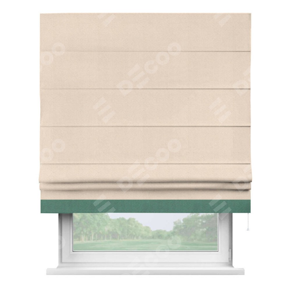 Римская штора производителя «Cortin», используется для проёма, пошита из ткани блэкаут с блеском розовая пудра, артикул 34632. Отделка шторы кантом «Джестер», ткань для канта используется из блэкаута с блеском разной расцветки на выбор. Изнаночная сторона материала черного цвета, что обеспечивает необходимую светонепроницаемость. Имеет универсальный механизм и подходит для монтажа: на потолок, на стену и в нишу.