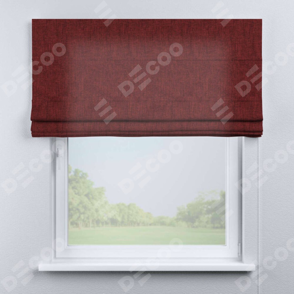 Римская штора производителя «Cortin», используется для проёма, пошита из ткани лён кашемир бордовый, артикул ткани 17213. Имеет универсальный механизм и подходит для монтажа: на потолок, на стену и в нишу.