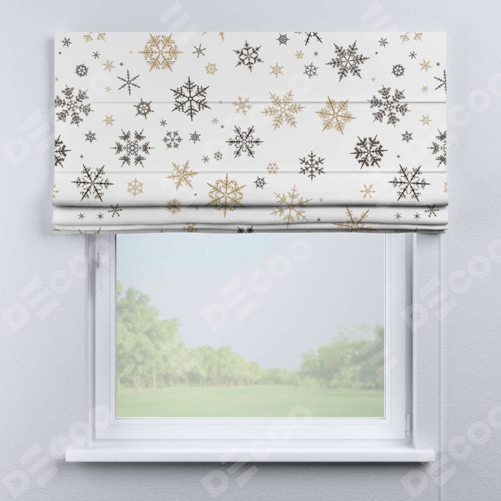 Римская штора производителя «Cortin», используется для проёма, пошита из ткани блэкаут с нанесением сублимационной печати «Зимняя метель». Имеет универсальный механизм и подходит для монтажа: на потолок, на стену и в нишу.