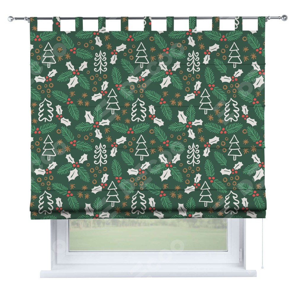 Римская штора производителя «Cortin», используется для проёма, пошита из ткани блэкаут с нанесением сублимационной печати «Рождественский узор». Данная модель пошита на петлях, комплектуется на выбор круглым карнизом и подходит для монтажа на стену. Римская штора на петлях имеет простую систему регулировки высоты, отличительным преимуществом данной модели является простой способ монтажа. Достаточно повесить ее на трубу и штора готова!