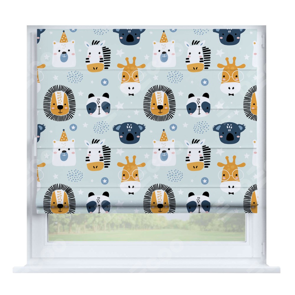 Римская штора производителя «Cortin», устанавливается на створку окна, пошита из ткани блэкаут с нанесением сублимационной печати «Чудесный зоопарк». Штора шьётся по индивидуальным размерам, для данного типа римской шторы возможная ширина от 35 до 150 см., высота до 250 см.